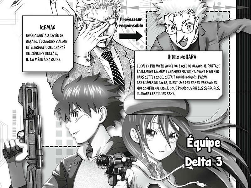 Les examens de mi-session atteignent enfin leur point culminant. Le combat devient de plus en plus extrême : Le corps se blesse de jour en jour, l'esprit est épuisé. Malgré tout, s'ils ne sont que trois à réussir, Eight, Hideo et Ayame ne lacheront rien. Eight poursuit son chemin, en y croyant, mais la situation se dégrade. Vers la fin des examens de mi-trimestre, au milieu d'une bataille féroce, l'ennemi de son père apparaît. L'histoire prend un tournant brutal vers l'apogée du chaos dans le tome 9 ! Un développement qui fait chaud au cœur avec le retour de Nohara dans le groupe et la participation de Kozuki et des autres. L'amitié au milieu du carnage, c'est très bien ! Crise après crise, jusqu'à ce que finalement, la fin de l'examen ne soit plus qu'à quelques dizaines de secondes ! Attention les apparences sont trompeuses ! Le manga supplémentaire est très puissant et s'intéresse au passé d'Ayame. Ayame est beaucoup plus puissante en tant qu'agent mais Eight devient de plus en plus grand en tant qu'être humain. L'habileté du dessin, l'audace de la division des cadres et le bon tempo de l'histoire sont les meilleurs qui soient.