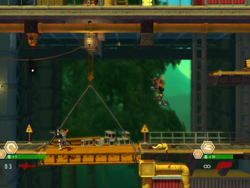 Apparu sur NES début 1990 en Europe (et quelques années avant en arcade), Bionic Commando reprend la même thématique qu'à l'origine. Nous y incarnons Nathan Spencer, un soldat bionique qui devra lutter contre le nouveau dictateur local. L'originalité de la série provient du grappin bionique du héros (situé dans son bras gauche) permettant de s'accrocher un peu partout dans les décors. Le principal changement de ce Bionic Commando Rearmed 2 vient de son degré de difficulté en sensible baisse depuis son ainé et à des années lumières du volet NES. A l'époque, le gameplay était calibré au millimètre, entraînant frustration et multiples "game over" précipités, mais le titre se montrait si dynamique qu'on avançait toujours et encore, sans relâche, pour espérer passer à la mission suivante.