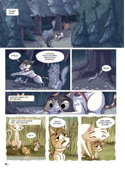 C'est une histoire sur les humains et les animaux. Elle est touchante par certains aspects, car elle montre à quel point les humains sont prêts à se battre pour leurs animaux. Mais elle aborde également le côté sombre de ce qui peut arriver aux chats lorsqu'un humain estime qu'il y en a "trop" dans une portée. Les illustrations de ce roman ont été réalisées de manière très belle, et il est vraisemblable que n'importe quel jeune enfant aimera vraiment les illustrations ainsi que le scénario lui-même. Les couleurs sont douces, tous les chats sont dessinés de façon à ce que vous puissiez voir qu'ils ont des personnalités différentes. Nous sommes intrigués de voir les prochaines aventures de Brina !