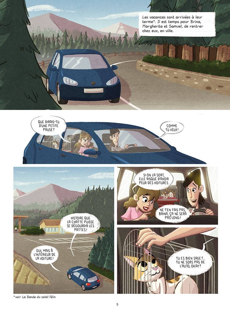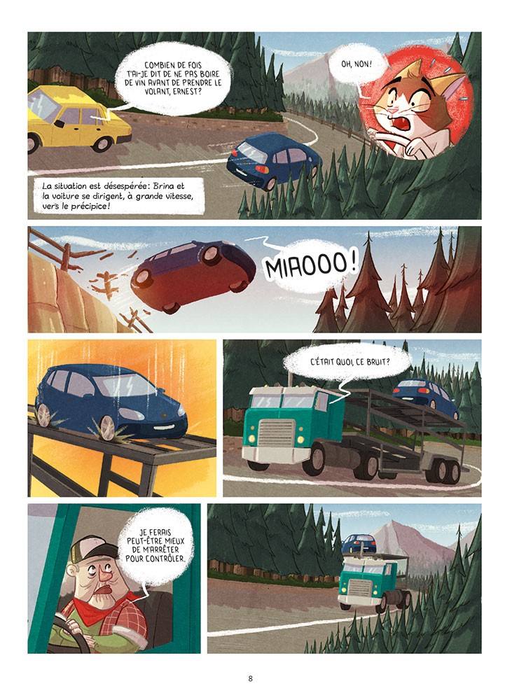 Notre protagoniste est Brina, un petit chaton fougueux qui ne peut s'empêcher de s'attirer des ennuis. Tout au long de l'histoire, nous suivons ses aventures étranges dans lesquelles elle doit surmonter des obstacles qui semblent insurmontables. Parmi elles, elle doit retourner chez ses maîtres après avoir été accidentellement enfermée dans un camion et déloger un chien voleur. Obstacles qu'elle affrontera toujours avec ténacité et obstination grâce à ses amis. Un de ses points forts, les piliers qui l'aideront à surmonter les différents moments de découragement qui la saisiront. Des amis qui, à leur tour, seront aidés par Brina avec courage et ardeur lorsqu'ils se trouveront en difficulté. L'histoire est linéaire mais divisée en petits chapitres, chacun étant consacré à l'une des aventures de Brina et chacun contenant sa propre morale. Tous les événements s'intègrent parfaitement dans l'ensemble du récit et font réfléchir le lecteur sur un thème particulier. Les dessins sont drôles et colorés et les personnages sont particulièrement expressifs. Les arrière-plans ne sont pas laissés au hasard mais sont également riches en détails. On remarque que les traits des figures humaines et animales sont destinés aux plus jeunes enfants. L'un des traits caractéristiques de Brina est ses grands yeux ronds.