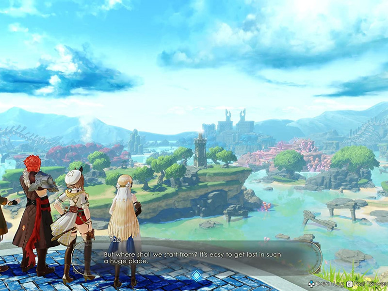 Graphiquement, Atelier Ryza 3 : Alchemist of the End & the Secret Key n'a rien d'infâme ni d'élogieux. Dans la lignée des précédents chapitres, on parle d'un cel shading en plein style anime, où bien qu'il y ait de petites améliorations par rapport au passé, cela reste un peu sale, avec des textures qui ne sont pas finies au mieux. Malgré cela, il faut bien avouer que certains décors nous ont agréablement laissé bouche bée, et que l'on sent bien le souffle d'un monde ouvert et coloré - même si ce n'est pas tout à fait un monde ouvert à cause de quelques murs invisibles. Tout comme le character design reste bien travaillé entre esthétique et caractérisation, notamment notre pétillante Ryza. Dans l'ensemble, le titre n'est pas irréprochable sur le plan graphique, mais il parvient tout de même à se défendre plus que suffisamment. Une petite note de mérite va aux temps de chargement qui, sauf dans quelques rares cas, sont rapides et ne ralentissent pas le rythme de l'action, en particulier lorsque nous changeons de lieu via le voyage rapide ou que nous devons interagir avec des bâtiments pour y entrer ou en sortir. Mais même dans les autres cas, il ne s'agit pas d'attentes éternelles, ce qui peut être un atout important.