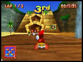 Plate-forme : Dual Screen Date de sortie : 20 Avril 2007 Editeur : Développeur : Genre : Course Multijoueur : Oui Jouable via Internet : Oui Test par Nic0076.5/10 Diddy Kong Racing se voit adapter sur Nintendo DS. Un classique N64.Après Super Mario 64, voici une autre adaptation de jeux Nintendo 64 sur DS. Le concept n'a pas changé d'un iota : La paix et la tranquillité ont été interrompues sur l’île de Timber par l’arrivée du diabolique sorcier cochon Wizpig. Diddy, accompagné de 2 nouveaux personnages (NB : remplaçant les personnages de Rare), Dixie Kong et Tiny Kong, est appelé à la rescousse pour le vaincre. C’est à vous de vous lancer dans une aventure de courses en utilisant des modes de transport comme le kart, l’avion et l’hovercraft à travers 20 circuits 3D pour le bannir définitivement de l’île. Diddy Kong Racing DS propose différents modes de jeux. Le coeur est bien sur le Mode Aventure, dans lequel vous traverserez cinq mondes différents pour récupérer des ballons, débloquer des nouvelles zones et finalement affronter l’ignoble Wizpig. Tout en faisant la course dans les différents stages, il faudra également essayer de récupérer les pièces égrenées sur les circuits. Celles-ci leur permettront d’acquérir des améliorations pour les véhicules ou d’en débloquer d’autres qui sont essentielles pour s’assurer d’avoir le meilleur kart, avion ou hovercraft. Une fois les circuits débloqués dans le mode Aventure du jeu, ils deviennent accessibles dans le mode Course Unique. En outre la course aux médailles est toujours présentes. Mais DS oblige, vous pourrez laisser votre empreinte dans le jeu en créant vos propres circuits et customiser les icônes et les tableaux qui se trouvent autour du circuit en jouant sur l’écran tactile. Des nouveautés ?Malgré l'injection de nouvelles textures dans les décors, Diddy Kong Racing DS souffre d'un aliasing assez important sur DS. C'est d'autant plus flagrant quand on le compare à la version N64. Qui plus est, le brouillard masquant l'affichage tardif des décors est toujours présent. Un bon point cependant, l'animation ne souffre d'aucune ratée, meme si Mario Kart DS semble beaucoup plus punchy et nerveux. Mais une des nouvelles caractéristiques de Diddy Kong Racing DS se trouve dans les modes multijoueurs disponibles. Le titre de RareWare permet en effet de s'affronter jusqu'à huit, dans les modes course unique, course aux médailles, courses du Trophée, arènes, et course des souhaits de T.T, avec une seule cartouche de jeu. Le jeu est également compatible Nintendo Wi-Fi Connection et vous permet de défier jusqu’à 5 adversaires. De plus, un éditeur de circuits a été intégré. Coté jouabilité, on retrouve des controles assez simples, meme s'il faut parfois gribouiller l'écran tactile avant le départ pour réaliser un turbo. Nivrau son, là encore c'est du classique déjà entendu, mais le jeu est compatible avec la micro de la console et vous pouvez enregistrez votre chant de victoire. En parlant de victoire, le jeu se montre facile en courses, mais les compétitions contre les boss se corsent rapidement. Qui plus est, le gameplay a un peu vieilli, et face à un Mario Kart DS, Diddy ne peut plus rivaliser. Reste une production sympathique ... VERDICT- Diddy Kong Racing revient sur DS dans une conversion fidèle à l'original. Cependant, depuis 1997, les jeux de course ont considérablement évolué et le jeu supporte donc mal la comparaison face à Mario Kart DS. Un titre sympathique donc, mais loin de sa splendeur passée. |