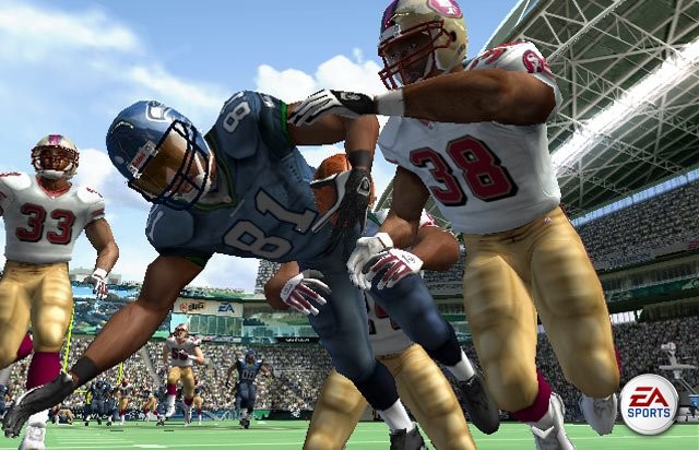 Editeur : Développeur : Genre : Sport Multijoueur : Oui Jouable via Internet : Oui Test par Nic0078.5/10 En quête vers toujours plus de réalisme, le nouveau Madden débarque sur NGC. Quid des nouveautés ?Toujours plus complet pour ne pas dire complexe, Madden 2006 est loin d'être un jeu aisé. Le manuel est ainsi extrêmement détaillé avec moults combinaisons de jeu à retenir. N'oublions pas que le titre est en plus entièrement en Anglais (textes et voix), un choix sans doute décidé au vu du manque de succès du sport en France. Pour ce volet 2006, EA a revu les mouvements offensifs des joueurs. C'est parfois assez bourrin, mais aussi très tactique. Comment faire progresser son équipe ? Ici point de 4-4-2, il faut connaître les règles du football Américain par coeur ou alors aller demander conseil à John Madden. Madden 2006 embarque également un nouveau système de passes, beaucoup plus précis mais moins abordable. En réalité à l'écran vous voyez le champ de vision du Quaterback et pouvez focaliser son regard sur un joueur de l'équipe. A partir de là vous pourrez savoir à quel moment réaliser une passe. Mais il est également possible de feinter et passer le ballon à un autre équipier au dernier moment. Seul soucis, vous ne voyez pas où le ballon atterit, à moins d'user du stick C, et encore il faut être réactif car l'IA est au point ! Autre point clé, la possibilité de jauger sa passe grâce au stick gauche et ainsi de faire une passe en hauteur ou en profondeur. Le mode NFL Superstar est aussi une nouveauté de cet opus qui croulait déjà sous les modes de jeux (match immédiat, entraînements diverses, franchises, etc ...). Il s'apparente à une sorte de mode carrière, mais au lieu d'incarner directement un joueur, vous commencez en amont en sélectionnant ses parents (!). Chacun d'entre eux bénéficient de compétences spéciales qui vont se retrouver sur leur rejeton. Une fois celà effectué vous pourrez le personnaliser à votre convenance et partir prendre contact avec son mentor. Ensuite rendez vous avec un agent et c'est parti pour les matchs. Un calendrier sera même accroché dans votre appartement (qu'il faudra chercher) vous détaillant votre planning, entraînements, conférences de presse, virées en ville, etc ... Techniquement en progrèsMême si on a vu depuis les images de Madden sur consoles nouvelles génération, cette version NGC s'en sort encore bien avec des graphismes détaillés et des animations fluides. Côté jouabilité, tout se fait en finesse mais il y a énormément de commandes à assimiler et le jeu est en Anglais.
