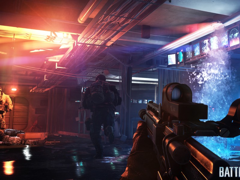 Editeur : Développeur : Genre : FPS Multijoueur : Oui Jouable via Internet : Oui Test par Nic0078/10 Deux ans après son prédécesseur, Battlefield revient sur consoles. Retour au front.Développé par le studio suédois DICE, Battlefield 4 inaugure le nouveau moteur FrostBite 3 qui sera utilisé dans la plupart des jeux Electronic Arts à venir sur PS3/X360 et PS4/X0/PC (l'environnement n'ayant pas été porté sur Wii U). Il est toujours question de conflit dans la série Battlefield, alors celui du jour nous amène en Chine. En solo, nous dirigeons donc le soldat Recker au sein de l'escouade Tombstone, dans une campagne de seulement sept missions, heureusement moins linéaire que dans Battlefield 3. Toutefois le scénario ne brille pas par son audace, et les scripts sont beaucoup trop nombreux pour combler les joueurs solitaires. On pourra aussi se demander pourquoi aucune séquence en véhicule aérien n'est proposé alors que c'est le cas en multijoueurs. Ce quatrième opus apporte la fonctionnalité dite "lean & peek" qui permet de bondir d'une couverture, ou bien de se pencher sur le côté. Le ciblage d'ennemi est également plus précis qu'auparavant. Pour ce qui est du concept à proprement parler, il s'agit d'un jeu de tir à la première personne assez classique avec quelques objectifs à accomplir. Hélas, l'intelligence artificielle s'avère assez limitée, et quelque soit le nombre de vos alliés, les adversaires vous cibleront encore et toujours. Autant dire qu'on se sent bien seul, et lorsqu'on découvre le respawn infini des ennemis dans certains passages, nous ne sommes pas loin de toucher le pompon. Il faudra environ six heures pour terminer l'aventure solo, et on a davantage l'impression d'avancer dans un tutoriel pour le multijoueur, que de vivre une campagne à grand spectacle, malgré la présence de la fonctionnalité Levolution qui permet à la carte de se modifier en temps réel ou sous l'influence de vos actions (il est ainsi possible d'actionner des mécanismes ou de détruire certains pans du décor. Une conversion convaincante ?