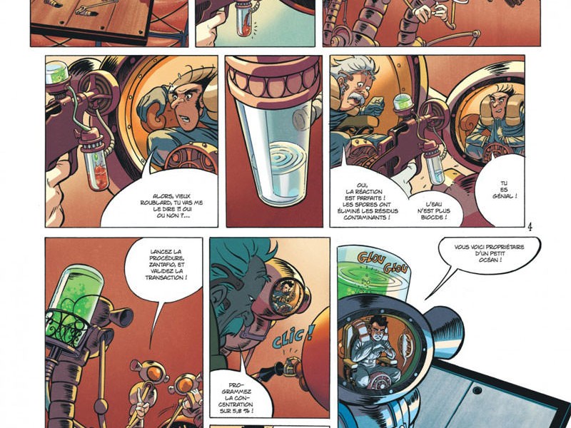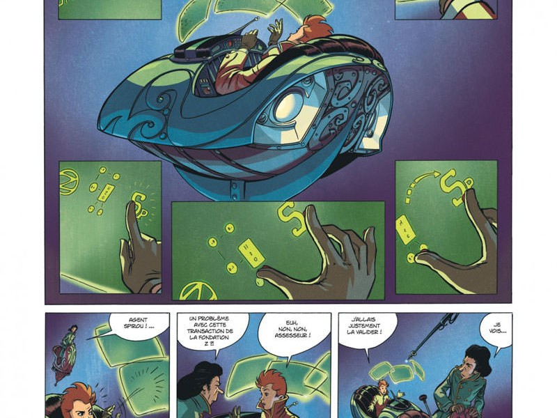 Rappelons que ce volet est un opus de la série "Une aventure de Spirou et Fantasio par ...". Facilement repérable en libraire, la bande dessinée arbore un format différent (beaucoup plus grand), une identité graphique qui tranche avec la série classique, et aussi un prix légèrement plus élevé. Le scénariste Dennis-Pierre Filippi (Voyage Extraordinaire) nous propose un récit futuriste évoluant dans un univers steampunk néo-rétro, c'est à dire futuriste tel qu'on aurait pu l'imaginer dans les années 1980 (ils manquent les néons fluorescents ceci dit) où la société est régie par un système de niveaux déterminé par l code génétique (comme dans Bienvenue à Gatacca). Les principaux personnages de la série ont ici des liens de parenté et l'administration a ici tout d'une dictature. L'histoire est passionnante, remplie de nombreuses références aux anciennes aventures du groom, le suspense est bien entretenu et le dessin de Lebeault (Horologiom) demeure toujours aussi réussi, avec une avalanche de détails, des décors d'une belle diversité, et un Spirou très singulier. Même Spip n'a rien d'un écureuil et Fantasio joue les James Bond (loin de sa représentation habituelle). Le cliffhanger de la dernière planche donne aux aventures de Spirou (de Franquin notamment), une toute autre perspective.