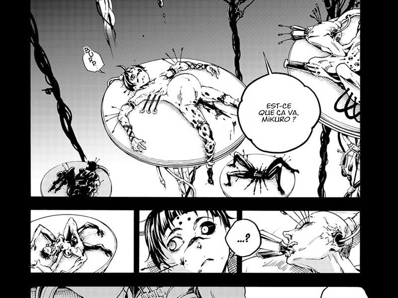 Dans ce nouveau tome, les Jackalope ont découvert que les Sickaggra se dissimulent dans une usine d'Amenotori et décident de s'y rendre. Yôkô et les siens ont découvert la nature de leur ennemi, il s'agit d'un spider évolué qui est à même d'utiliser tous ses pouvoirs tout en conservant l'intégralité de son esprit. L'auteur multiplie les fausses pistes dans ce troisième tome, mais une découverte étonnante risque de faire son apparition et tout remettre en cause pour Yôkô. La série contient de nombreux éléments familiers qui rappellent Deadman Wonderland, ce qui encourage le public à comparer sans cesse cette série et celle-ci. Designs de personnages familiers, configuration similaire, Akuta étant presque le successeur spirituel de Crow, l'organisation diabolique aux pouvoirs étranges, etc. Bien que le manga fasse sensation, il ne semble pas original pour ceux d'entre nous qui lisons le travail passé des créateurs. S'il y a une chose que le manga fait complètement bien, c'est dans le dessin, le point culminant de la série, sans aucun doute. C’est une histoire viscérale, sanglante, débordée et sauvage, et l’art de Kazuma Kondou est parfait pour le travail ici, tout comme il l’a été avec Livingstone. Les monstres à tête d'animal et les mécanismes qui actionnent les Jackolopes sont saisissants et terriblement impressionnants. Ils attirent votre attention sur l'horreur qui les entoure. L'action n'est pas toujours fluide et ne coule pas très bien, mais elle est très élégante et a beaucoup d'énergie.