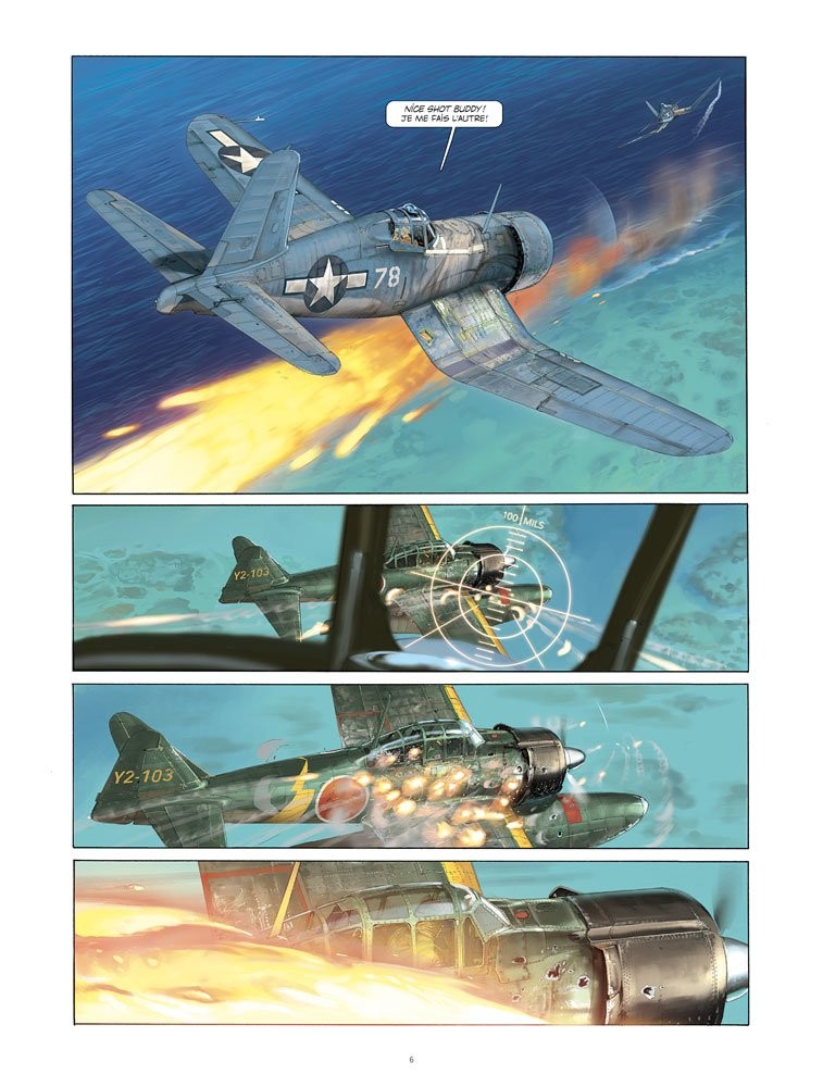 Angel Wings est à ce jour la série la plus réussie de Romain Hugault et le scénariste Yann ne s'en plaindra pas non plus. Les auteurs le doivent entièrement à leurs réalisations dans la création d'une intrigue convaincante où les dessins sont largement au service de l'histoire. "En grande partie", parce que Hugault saisit toutes les occasions de montrer qu'il est le meilleur concepteur d'avions de nos jours et qu'il exploite pleinement ces occasions. Il excelle également dans les intérieurs des années 1940, les belles voitures et, oui, d'autres carrosseries. Le moins que l'on puisse dire de cette collaboration optimale entre deux passionnés d'aviation, c'est une histoire agréable à lire et à regarder.