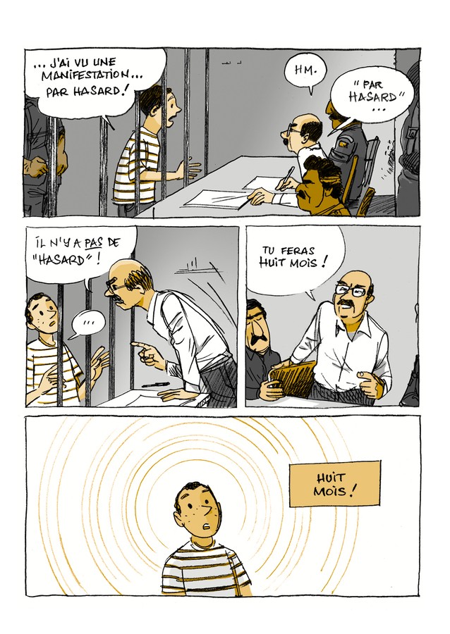 Cet ouvrage, tiré d'une histoire vraie, est un témoignage sincère d'un conflit qui semble insolvable et il marque un véritable basculement pour sa victime. S'il avait été libéré tout de suite de prison, Moh aurait sans doute été abasourdi par son arrestation mais aurait repris une vie d'ado banale, venant d'une famille de professeurs sans histoire. Mais ce séjour forcé de huit mois éveillera en lui une conscience militante, qui heureusement grâce aux études, vont lui éviter toute forme de radicalisation. Moh mentionne qu'il cultive son jardin entre Orient et Occident. Il vit désormais en France où il est chercheur. Côté dessin, le trait est vif, assez sobre contrairement à la thématique abordée.