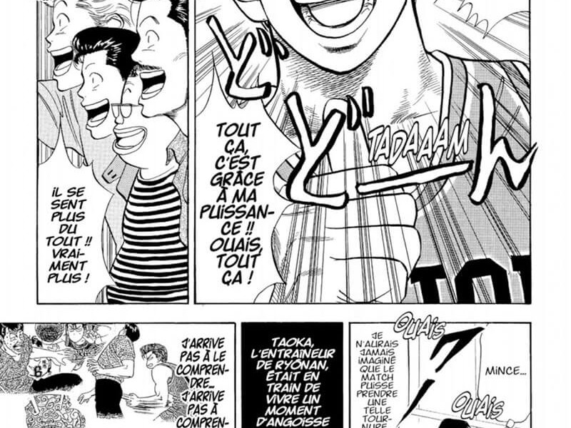 Le match entre les lycées Shohoku et Ryonan se poursuit alors que Hanamichi Sakuragi vole le ballon à Jun Uozumi et parvient à inverser la tendance. Avec Kiminobu Kogure et Kaede Rukawa parvenant à marquer plusieurs fois, cela permet à Shohoku High de rattraper Ryonan. Sakuragi utilise ce que Takenori Akagi lui a appris, lui permettant d'arrêter tous les joueurs de Ryonan, à l'exception d'Uozumi. Akagi retourne alors au match mais décide de remplacer Kaede Rukawa pour lui donner du repos. Akagi et Kogure continuent de marquer, permettant à Shohoku de prendre les devants pour la première fois du match. Cependant, Akira Sendoh reprend ensuite la tête du peloton pour Ryonan, Sakuragi étant incapable de l'arrêter. Rukawa revient au jeu, mais Anzai lui dit, ainsi qu'à Sakuragi, de s'unir pour bloquer Sendoh. Sendoh parvient à briser leur défense et Ryonan conserve une avance de quatre points. À la dernière minute du match, Kaede Rukawa et Hanamichi Sakuragi se sont accidentellement échangé le ballon et ont marqué, ce qui a mis leur équipe en tête. Cependant, Akira Sendoh marque deux points dans les vingt dernières secondes et le match se termine par la victoire de Ryonan. Même si Shohoku perd, ils impressionnent le public en donnant à Ryonan, l'une des meilleures équipes de la préfecture, un match serré. Le lendemain, Ryota Miyagi, membre du gang de Sakuragi, se fait rejeter par une fille alors qu'il est sur le point de revenir dans l'équipe de basket. Miyagi est attaqué par un groupe de délinquants dirigés par un étudiant du nom de Hisashi Mitsui, mais ils perdent son attention lorsque Miyagi voit Sakuragi se promener avec Ayako, la responsable de l'équipe, qui plaît à Miyagi. Pensant qu'ils sont un couple, Miyagi attaque Sakuragi, mais tous les deux assomment accidentellement Hisashi Mitsui. Miyagi et Sakuragi sont facilement arrêtés par Ayako et Haruko Akagi, mais lorsque Miyagi apparaît dans la salle de basket, Sakuragi le défie à un match de basket. Au-delà du côté sportif, Slam Dunk se distingue aussi par le côté comique, confié à de petites vignettes déformées en fin de chapitre et à différents personnages, principalement Hanamichi, mais aussi ses amis voyous. Le résultat du match était un peu prévisible - en ce qui concerne l'issue du match de basket-ball, la dynamique des équipes est toujours en train d'être réglée - en particulier pour Hanamichi Sakuragi. Notons que cette nouvelle édition reprend un format poche identique à l'original (simplement plus épais) sans page couleurs ni de mots de l'auteur.