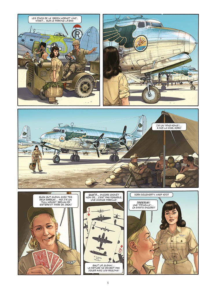 Dans cette dernière partie du cycle du Pacifique, nous sommes confrontés à un autre méchant morceau d'espionnage et de jalousie. Angela passe d'une histoire à l'autre, ce faisant, elle est quelque peu poussée dans un rôle de soutien, même si elle est très présente. Après ce cycle, nous pouvons nous attendre à un troisième qui aura lieu en partie en Corée. D'ici là, l'OSS sera déjà devenu la CIA pour laquelle Angela travaillera. Dans la trajectoire de Yann ces dernières années, Angel Wings a été une étoile brillante. Avec le dernier Thorgal, il s'affirme comme un pur conteur d'histoires au lieu d'un trivialiste. Pour lui, Angela est un moteur parfait pour une histoire policière, présentée comme une série d'aviation. Romain Hugault le recouvre d'une sauce rétro dans laquelle l'opulence des détails des décors, des avions, des vêtements et des visages soutiennent toute la crédibilité. En fait, on ne devrait plus parler de ses qualités, ses fans le savent depuis longtemps : Les dessins sont à couper le souffle et les planches regorgent de détails. Cependant, les pin-ups sont cette fois relativement absentes tout comme les combats aériens. A noter que le volume contient une planche avec quelques autocollants.