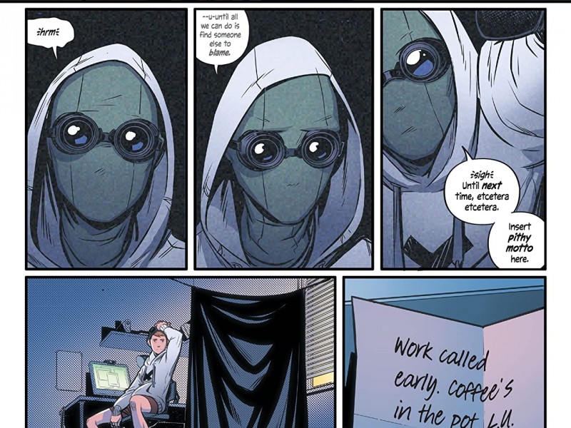 C'est une histoire sur la colère, celle qui vous ronge et vous change si vous ne la gérez pas. Le genre de colère que l'on laisse couver chez les jeunes d'aujourd'hui, avec peu de ressources pour y remédier. Il s'agit d'une histoire complexe qui porte non seulement sur la limite à ne pas franchir pour des actions justifiables, mais aussi sur la limite à ne pas franchir pour le pardon et la rédemption. Simon Spurrier, un conteur remarquable, est également incroyablement sympathique au parcours de chacun de ses personnages. Il dévoile lentement l'histoire et les motivations de chaque personnage dans des passages puissants et émotionnels. Il est difficile de ne pas s'investir dans cette courte série. Il est difficile de ne pas vouloir y penser et en parler, car elle va vraiment dans ce sens. De plus, les illustrations de Wildgoose et les couleurs de May sont absolument superbes. Certaines images sont émouvantes par la puissance qu'elles dégagent.