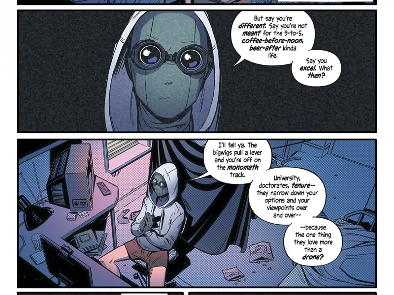 Au cours des deux dernières années, Spurrier a créé des séries incroyables, parsemées de questions sociales profondes. Il ne s'agit pas seulement de science-fiction particulièrement bonne, mais il utilise la science-fiction pour disséquer un aspect de l'humanité qui ne peut pas continuer comme ça.