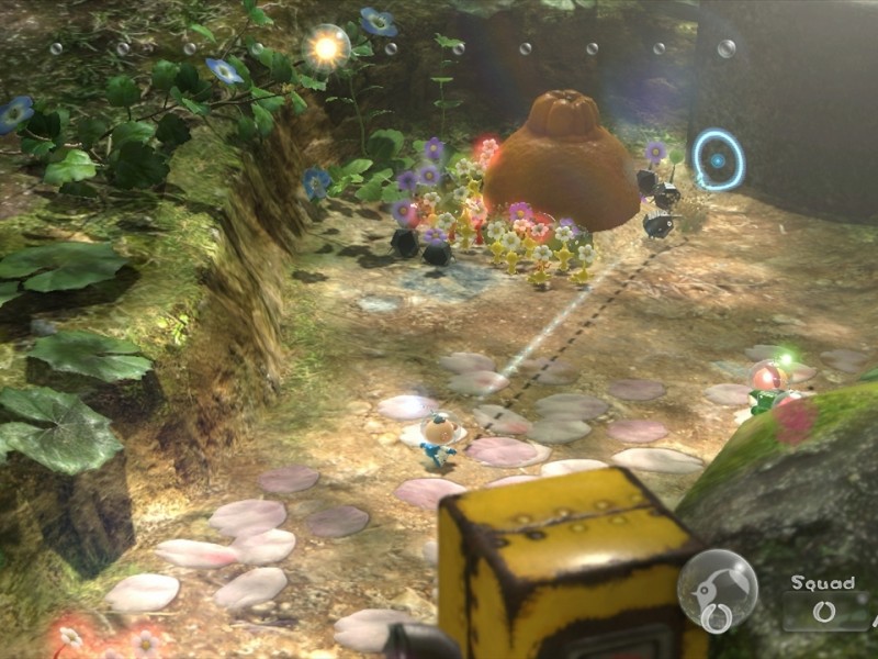 Plate-forme : Wii U Date de sortie : 26 Juillet 2013 Editeur : Développeur : Genre : Action Multijoueur : Oui Jouable via Internet : Non Test par Nic0078/10 Après neuf ans d'absence, la série Pikmin marque son retour sur consoles. Un retour attendu.Contrairement à ses prédécesseurs, Pikmin 3 ne débute pas avec le capitaine Olimar, mais avec trois personnages, Alpha, Brittany et Charlie de la planète Koppaï. Leur employeur les a envoyés chercher des denrées comestibles sur d'autres planètes. Sans surprise, leur périple va les amener sur la planète PNF-404, terre des Pikmins, où ils se retrouvent séparés après un crash de leur vaisseau (cela devient coutumier dans la série). Si vous n'avez jamais joué à un Pikmin jusque là, une petite piqure de rappel s'impose : Chaque variété de Pikmin a des pouvoirs spéciaux que les personnages doivent utiliser à leur avantage. Les Pikmins rouges résistent ainsi à de hautes températures, les Pikmin bleus survivent dans l’eau tandis que les Pikmins jaunes peuvent détruire des obstacles en utilisant des bombes. Si les Pikmins violets et les Pikmins blancs du deuxième épisode ne sont plus présent, on retrouve des Pikmins Rocs qui peuvent casser les cristaux, ainsi que des Pikmins Ailés, qui peuvent donc voler au-dessus de l'eau. Le gameplay est plutôt classique, et vous demandera d'avancer avec prudence, de battre des monstres puis de récolter leurs corps pour créer d'autres Pikmin, et bien sur de récolter des fruits. Au gré de la partie, il deviendra possible de contrôler une bonne centaine de Pikmin à la fois en gérant leurs actions individuellement, en groupe ou via une armée de sujets. Cependant, chaque journée d'exploration est limitée dans le temps, et les journées sont très courtes sur PNF-404. Qui plus est, les Pikmins sont particulièrement sensibles durant la nuit, et se feront indéniablement dévorer s'ils ne sont pas rentrés dans les temps. Le GamePad permet heureusement d'organiser facilement son travail, et la présence de trois personnages offre la possibilité de mieux répartir le travail. Vous pourrez d'ailleurs envoyer de façon automatique vos avatars où vous le souhaitez sur la carte. Si malgré tout, votre progression devenait trop délicate, il est possible de reprendre la partie à la journée de votre choix, à n'importe quel moment. Une réalisation très réussie.Sur le plan technique, l'apport de la haute définition a fait du bien à la série Pikmin. Même si on sent encore la filiation Wii, notamment avec certains décors un peu flous, le graphisme apparait très agréable et particulièrement coloré. La prise en main tolère beaucoup de schémas de contrôles différents, GamePad bien sur, mais aussi Wii U Pro Controller, ou encore Wiimote (la télécommande rend d'ailleurs la sélection, le regroupement et les ordres des Pikmin plus intuitifs). Il est d'ailleurs possible de passer d'une manette à l'autre à la volée, sans même mettre le jeu en pause. Plus délicat, l'intelligent artificielle manque un peu de panache, le comportement des Pikmins n'ayant pas vraiment évolué en une décennie. Parfois certains d'entre eux se coincent même dans le décor. La durée de vie s'avère assez variable. Si le mode Histoire occupera une dizaine d'heures (près du double voire davantage avec tous les fruits), on compte des missions à parcourir seul ou à deux en coopération (l'écran est alors scindé en deux) qui demandent de ramener des objets à la base, mais aussi un Duel Bingo qui requièrent de remplir une partie d'un tableau. Pas de mode de jeu en ligne en revanche. VERDICT-Si Pikmin 3 ne révolutionne pas la saga, ce titre signé Shigeru Miyamoto affiche une réalisation assez charmante, et améliore la formule de la série d'origine, en ajoutant des nouveaux mécanismes, faisant la part belle à la stratégie. |