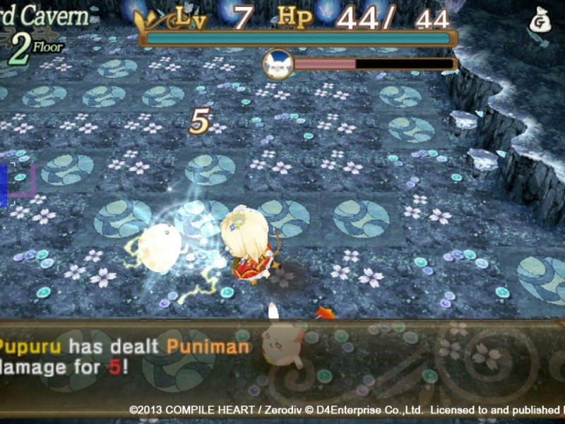 Dans ce RPG déjanté, deux phases différentes vous attendent. En ville, nous faisons face à du visual novel tout ce qu'il y a de plus classique, en 2D donc, avec un humour bien présent, et une ambiance assez moe-moe. Le jeu étant en anglais, quelques problèmes de compréhension peuvent survenir cela étant. Dans les donjons, le titre change d'allure et devient ce que l'on nomme un dungeon crawling. Vous visiterez des environnements générés aléatoirement par la console, et devrez gravir les étages jusqu'au sommet sans vous faire éliminer par le boss qui se cache dans les lieux. Notons que dans chaque donjon, votre équipe débute au niveau 1. Quitter les lieux (ou le terminer) vous fera également repasser au niveau 1. Entre les différentes épreuves, vous conserverez donc uniquement votre inventaire et votre argent (à condition que Pururu ne soit pas battue entre temps). La progression s'effectue sur un damier, au tour par tour, et on retrouve également un système pour améliorer son équipement (plus vous utiliserez un objet, plus il gagnera en expérience). Il est aussi possible de combiner différentes pièces afin d'obtenir des armes et armures plus résistantes.