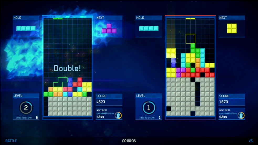 ![]() Plate-forme : Xbox One - Nintendo 3DS - PlayStation Vita Date de sortie : 18 Décembre 2014 Editeur : Développeur : Genre : Réflexion Multijoueur : Oui Jouable via Internet : Oui Test par Nic0077/10 Tetris accueille une nouvelle adaptation sur Xbox One, cette fois sous l'égide d'Ubisoft Montréal. Un épisode complet.Encore un épisode de Tetris ? Certes, ce classique du jeu de réflexion russe a été maintes fois adapté sur consoles, mais ce volet console apporte des nouveautés au niveau des options de jeux. Le concept popularisé par la version Game Boy (sorti en 1989 déjà), vous propose d'emboiter des blocs (les fameux tetraminos) qui tombent un par un à l'écran, afin de créer des lignes. En faisant disparaître quatre lignes simultanément, vous créerez un Tetris. Mais ce n'est pas tout : Cette édition intègre une dizaine de modes différents. Le mode Marathon vous demandera d'atteindre le niveau 15, le Duel offre la possibilité d'affronter la console ou des joueurs en versus, la déclinaison Ultime nécessite d'être la dernière personne à jouer en utilisant les bonus (parmi eux l'attaque "Manège enchanté" pour changer ses adversaires de place, la manœuvre "Il pleut bergère" pour leur lancer des briques supplémentaires ou encore la "Scie Circulaire" qui vous aidera à nettoyer plusieurs lignes simultanément), l'Infini vous demande de tenir le plus longtemps, l'Ultra requiert de récolter le plus de points possible dans un défi de trois minutes contre la montre, le Sprint impose d'éliminer 40 lignes aussi vite que possible, tandis que le mode Challenge comporte quatre variantes. Avec le Master, les Tetriminos tombent rapidement et apparaissent directement au bas de l'écran., dans Rotation, l'orientation des blocs est aléatoire et il n'est pas possible de les faire tourner. Escalade requiert d'éliminer de plus en plus de lignes, tandis que dans Invisible, les Tetriminos deviennent invisibles en atteignant le bas de l’écran. Tetris vous offre également une série d’options multijoueurs, puisqu'il est possible de jouer à 4 sur un même écran et jusqu'à 8 en ligne. Sur le plan technique, l'univers demeure assez basique, et si le design global est assez sympathique, les arrières-plans se montrent très répétitifs. Les musiques reprennent les thèmes des anciens opus, mais remixés. Si les thèmes sont assez réussis, là encore ils deviennent rapidement redondants, faute à un choix trop restreint de chansons. Quoiqu'il en soit, le jeu est assez complet, et commercialisé à seulement 9,99€, ce qui demeure un investissement sur. VERDICT-Une édition plutôt sympathique de Tetris. Le titre demeure toujours aussi amusant, et les nombreuses déclinaisons proposées permettent de rester devant sa console pendant de longues parties. |