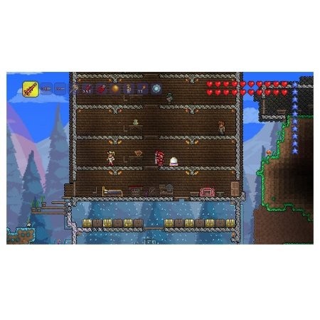 Editeur : Développeur : Genre : Action/Aventure Multijoueur : Oui Jouable via Internet : Oui Test par Nic0077/10 Terraria arrive enfin sur Nintendo 3DS dans une version plutôt efficace. Retour au front.Lancé en mai 2011 sur PC, Terraria a déjà connu une grande vague d'adaptation sur consoles. Sur Nintendo 3DS, c'est à nouveau le studio Engine Software qui est responsable du portage. Proposée à 19,99€ sur l'eShop (la version cartouche arrive en janvier), cette version nous permet de visiter des environnements générés aléatoirement par l'ordinateur. Dans l'aire de jeu, vous devrez creuser toujours plus loin pour collecter de nombreuses ressources (accessoires, argent, minerais), survivre à des événements divers et variés (chute de météores, arrivée du Père Noël), explorer un monde toujours plus grand, et construire des centaines d'objets (des armes pour se défendre, mais aussi une maison et pourquoi pas un château). Les bâtiments accueilleront rapidement de nombreux gens qui vendront leurs services pour vous aider dans votre voyage (marchand, infirmière, etc). Les monstres sont incroyablement variés (150 au total), et il n'est pas rare de tomber sur un boss (15 ). Heureusement, l'arsenal de départ comporte des haches de combat, une épée, un arc, des shurikens, des fusils ou encore des boomerangs, et de nombreux bonus apporteront des pouvoirs supplémentaires à votre personnage (notamment le double saut). Les environnements se montrent davantage variés que dans un Minecraft. Votre aventure vous mène sous terre donc, mais dans les airs et parfois sous l'eau. Naturellement, les destinations s'avèrent plus ou moins dangereuses, et en cas d'avarie votre matériel restera là où le personnage a succombé, obligeant souvent à faire un long détour depuis le dernier point de contrôle. Le personnage est customisable d'emblée, et comporte un large panel d'améliorations. En ligne, on retrouve du coopératif sympathique, mais les combats restent toujours aussi confus. Aucune compatibilité avec la Wii U à constater, à cause de la limite de la taille du monde sur la portable. Une réalisation à la hauteur ?Le principal écueil des versions consoles de Terraria venait d'une maniabilité parfois un peu hésitante, malgré les différents systèmes de ciblages, rendant les interactions difficiles avec les divers éléments du décor. Sur 3DS, le confort est déjà plus pertinent, le jeu étant compatible avec l'écran tactile pour offrir une construction plus simple des structures et des combats ennemis. L'écran du bas sert à afficher les différents modes (zoom pour construire/miner, craft) et raccourcis (sac à dos, objets principaux). Le curseur d'attaque est orienté par le pavé circulaire, et lorsque l'on tient un outil, un autre curseur s'affiche par défaut sur les blocs de fort intérêt. Seuls les mondes ont été forcément retouchés pour s'adapter au petit écran (1750 x 900). Notez que la 3D stéréoscopique n'est pas gérée et que le jeu tourne en 30 fps sur la 3DS mais grimpe à 60 fps sur New 3DS. Les combats manquent un peu d'intensité, et il est difficile d'affronter plusieurs ennemis simultanément tant le maniement des armes est rigide. Heureusement, le contenu de Terraria lui n'a pas été altéré, et de nombreuses mises à jour PC sont inclues d'office (équivalent de la version 1.2 pour être précis). Côté son enfin, les compositions sont plutôt efficaces et les bruitages corrects. VERDICT-Une adaptation de Terraria qui ne bouleverse pas la formule établie sur PC. Exhaustif et plutôt bien réalisé, le jeu affiche une ergonomie plutôt cohérente grâce à l'écran tactile, même si la lisibilité n'est pas toujours optimale sur Nintendo 3DS. Heureusement, le jeu conserve toujours son caractère addictif, mais n'égale toujours pas la version Windows. |
