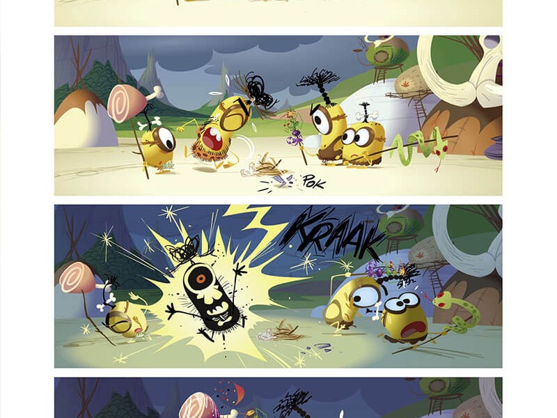 Les Minions reviennent dans une BD truffée d'humour et l'on passe un très bon moment à observer ses personnages loufoques, et un peu stupide, à traverser le temps pour revisiter les moments charniers de l'histoire . Seul regret, étant donné qu'il n y a pas de texte cela se lit très vite.