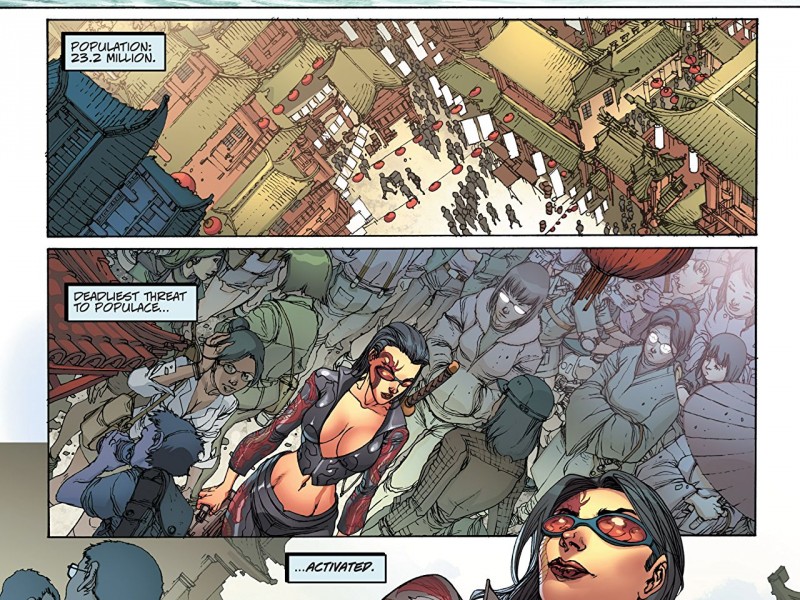 Le cœur de l'histoire tourne autour d'une mystérieuse mallette high-tech qui abrite un pouvoir invisible ; un pouvoir qui, à certains moments de l'histoire, peut défier la gravité, dissoudre la matière, et même causer ce qui semble être un voyage dans le temps. Abbey Chase et le reste du gang Danger Girl sont en train de traquer une femme mystérieuse avec un tatouage de dragon complexe, qui est en possession de ladite mallette. Au cours des quatre chapitres, il y aura des courses-poursuites à profusion avec des avions, des trains et des automobiles qui occuperont le devant de la scène dans l'intrigue. Cette série traite d'une chose et d'une seule chose : l'action. C'est non-stop. De l'ouverture de la série jusqu'à la toute dernière page, le lecteur n'a guère le temps de se reposer. Cela se lit comme une version comics de Fast'n Furious. Cela signifie aussi que l'intrigue est fragile, transparente et souvent inexistante. Il y a des pages où les personnages se crient dessus, se disputent sur le contenu de l'affaire. Bien que le patron d'Abby, Duece, semble avoir la moindre idée de ce qu'il y a exactement à l'intérieur de l'étui, il garde ce secret tout au long de la série. Même s'il aurait été plus facile d'annoncer au lecteur qu'on ne sait pas ce qu'il y a à l'intérieur de la mallette, l'idée qu'un des personnages cache cette information pendant que les membres de son équipe risquent leur vie pour sauver cet objet est tout simplement brillante. Au moment où la réponse est sur le point de se présenter, elle est interrompue par la séquence d'action suivante, ce qui conserve le lecteur investi.