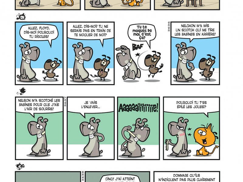 Du côté de la mise en page, on retrouve des planches de trois ou quatre cases, là encore une norme assez récurrente dans le genre (Garfield, Grimmy, etc). Le design s'avère simple et limpide, l'idéal pour ce genre de séries en somme, surtout que son univers est suffisamment rassembleur pour séduire un large public, de même que le récit est aisé à suivre. À ce jour, Nelson a déjà vécu plus de 4.000 strips et l'auteur a su modifier sa formule sans bouleverser les fondamentaux. Bien sur, Nelson a de la concurrence dans le domaine de la gaffe, celle de Floyd, un labrador pour le moins empoté et qui se retrouve souvent au mauvais endroit au mauvais moment, bien qu'il nous livre parfois des réflexions philosophiques éclairées.