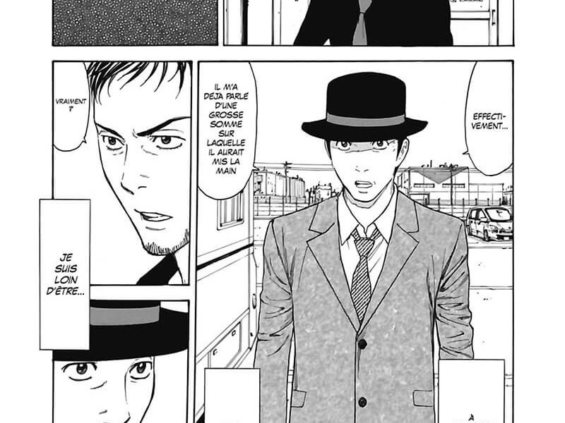 Dans ce cinquième volume, la tension monte encore d'un cran. Tetsuo ou Kyôichi ne survivra pas aux prochains chapitres. Comme le rappelle l'ultimatum de la mafia, Testuo sera torturé et abattu si aucun coupable n'est désigné d'ici demain soir. Si on pouvait penser que le Yakuza aurait un avantage, Tetsuo a semble-t-il garder une carte utile dans son jeu. Les ossements de Nobuto sont en effet retrouvés dans le coffre-fort de Kyôichi ! Eh oui, il a joué et a perdu, sans avoir tenu compte du rôle de Kasen, la femme de Tetsuo, dans cette partie. Kyôichi s'est montré très humain dans les tomes précédents et Tetsuo semble triste à ce qui va lui arriver, mais ce dernier sait qu'il n'a pas le choix s'il veut sauver sa peau. Kyôichi est quant à lui certain que Tetsuo est l'auteur de toutes ces manigances et tente le tout pour le tout pour rester dans le match. Comme le ferait un auteur de polar ou un expert de la police, Tetsuo ne se laisse pas abattre et analyse méticuleusement la situation afin de trouver le meilleur moyen de retomber sur ses pattes, même si les moyens de la mafia japonaise sont considérablement supérieurs. L'auteur insère d'ailleurs quelques pages pour expliquer son cheminement de pensée, ce qui est toujours utile. Un autre point appréciable dans cette histoire est l'ingéniosité qui s'apparente à Death Note. Les sentiments et la psychologie des personnages ont également leur part belle à chaque étape de cette aventure. Le travail graphique est superbe. Il est très clair que le physique de Tetsuo correspond vraiment au ton de l'histoire alors que les personnages féminins apparaissent extrêmement charmants.