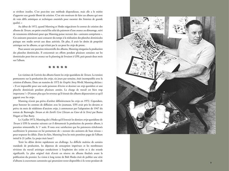 La caractéristique essentielle du travail de Manning est la fidélité à l'esprit des romans d'Edgar Rice Burroughs. Jamais auparavant, en tant qu'auteur, il n'avait absorbé aussi profondément l'héritage littéraire de Tarzan. Le seigneur de la jungle ne parcourt plus un continent africain plus ou moins réaliste, son royaume est un scénario fantastique rempli d'êtres imaginaires tels que des hommes portant une queue (comme le jeune Son Goku dans Dragon Ball, rien de déplacé !), des hommes-bêtes ou les énigmatiques hommes ailés et des bêtes incroyables comme toutes sortes de dinosaures, insectes géants et tigres à dents de sabre. Les histoires sont inscrites dans le plus pur fantaisie et souvent le mot d'ordre qui pousse Tarzan à visiter des terres inconnues n'est autre que celui de sauver sa femme Jane, kidnappée par des êtres hostiles. La sensation du lecteur lors de la traversée des belles pages dessinées par Manning est celle de l’étonnement; le sens de l'émerveillement anglo-saxon est à l'ordre du jour. Les éditions Graph Zeppelin vous proposent de redécouvrir cette légende du strip dans une édition soignée qui comprendra quatre volumes de 288 pages. Ce sont des albums à couverture rigide, avec une reproduction parfaite, dans le respect du format original des quotidiens en noir et blanc et des dimanches en couleurs. Ce troisième tome couvre la période 1971-1974 et contient pas moins de 650 strips, l'action couvre les aventures de Tarzan à Pal-ul-don, Opar, Rellucidar et au-delà.