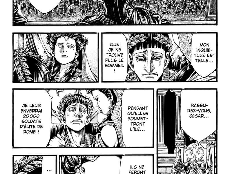 Le dessin est bon et très caractéristique de l'auteur, notamment dans la façon d'encrer et de faire des ombres. La conception des personnages est réussie, tout comme celle des vêtements et des monstres, bien que l'auteur lui-même dise qu'il a du mal à faire de tels dessins. Les scènes de combat sont très narrées, créant des moments très épiques et gérant très bien les rythmes de la bataille, le mauvais côté est que parfois, en raison du dessin détaillé et avec tant de noirs, cela prête à confusion dans des vignettes particulièrement petites. Nous aurions aimé profiter davantage de l'atmosphère romaine, c'est-à-dire qu'à l'exception du Colisée et de peu d'autres choses, on ne voit presque rien de Rome ou de ses constructions.