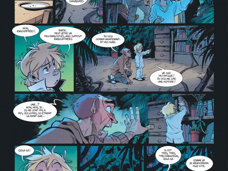 Un deuxième cycle qui démarre sur les chapeaux de roue, avec un fil rouge mêlant allégrement "Alice au Pays des Merveilles" et "Peter Pan", Olivier Bocquet se lance dans une aventure rocambolesque où les protagonistes sont sans cesse sur le fil. L’histoire ressemble par moments à ce qui pourrait être considéré comme les origines du très intéressant roman de Michael Crichton, "Les Mangeurs de Mort" dont l’adaptation cinématographique en 1999 "Le 13è Guerrier" , (pourtant) réalisée par John McTiernan , n’était pas des plus fameuses. La lecture de cet épisode réclame beaucoup plus de souffle que d’habitude, tant le rythme, le suspense et les surprises sont soutenus. Par ailleurs, l’introduction de l’album et de « nouveaux » personnages, laisse conjointement augurer de migraines en série pour tout lecteur pensant que Schrödinger n’est qu'un nom un peu snob pour un chat indécis. Comme tous les chats, d’ailleurs… Au dessin, Brice Cossu ne baisse pas la garde : au contraire ! A aucun moment il ne se repose sur ses lauriers, se permettant quelques fulgurances graphiques « cartoonesques » superbement réussies : toujours drôles, constamment dans le ton, au service du propos scénaristique.