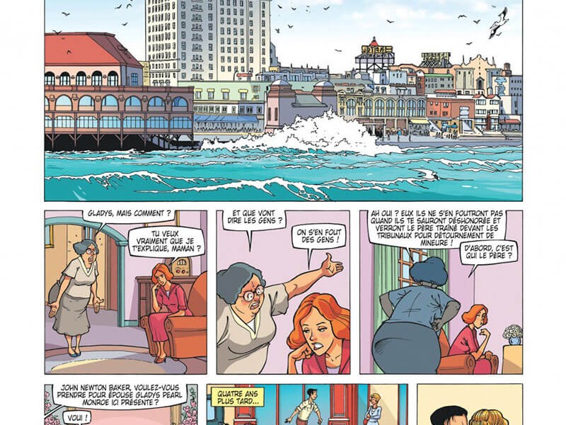 Pour celles et ceux qui n’auraient pas le temps de s’attarder sur la vie passionnante de Norma Jean Baker, cette bande dessinée éditée chez Dupuis (dans la collection « Les étoiles de l’Histoire ») sur l’une des plus grandes icônes du 7e art est pour vous ! Bien qu'admirative (fort logiquement d’ailleurs), elle évite habilement l’écueil de l’hagiographie et n’éclipse pas, n’ellipse pas, ne lisse pas les nombreux paradoxes de l’artiste. C’est ainsi un beau portrait de 104 pages qui nous est offert par Bernard Swysen au scénario et Christian Paty au dessin, dont la documentation solide mais soluble ainsi que la sobriété narrative et graphique nous immergent très efficacement, sans esbroufes ni effets parasites, dans la vie et l’œuvre de Marylin Monroe. De son enfance chaotique à Los Angeles, à son premier mariage avec James "Jim" Dougherty, en passant par ses débuts en tant que mannequin pendant la Seconde Guerre Mondiale, ses premiers pas au cinéma, ses études littéraires, l'irruption de ses problèmes de santé, sa grande dépendance aux médicaments ainsi qu'à l'alcool, sa liaison avec deux Kennedy jusqu'à sa troublante disparition le 4 août 1962 encore entourée de mystère aujourd'hui.