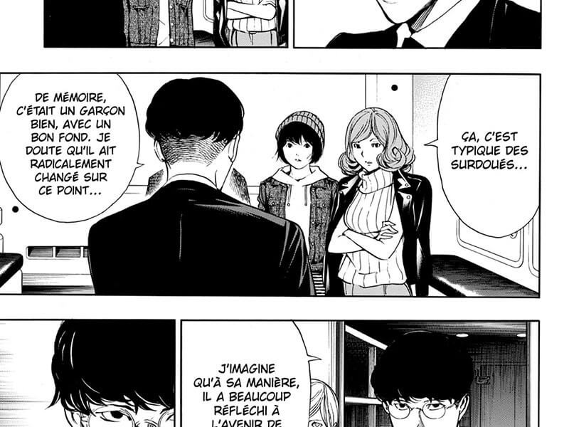 Ce volume de Platinum End a pris tellement de temps à sortir que vous risquez d'avoir complètement oublié dans quel arc nous étions arrêté. Selon le professeur Yoneda, Dieu n'existe pas. Quel est son plan ? Que souhaite-t-il obtenir ? Les anges et les humains complotent et se battent pour imposer leur propre vision. Alors maintenant, nous avons un nouveau mythe «Kira». Un scientifique très respecté est le candidat d'un ange puissant, et il commence à manipuler le gouvernement et l'opinion publique pour achever son plan de vaincre l'équipe de Mirai. Le contenu nihiliste de ce volume est intéressant et ramène le manga au niveau de certains des conflits précédents. Cependant, un point très bas est exactement le personnage de la couverture, qui a non seulement une participation ridicule dans le volume, mais cette participation est très négative. Yuri n'apparaît dans ce tome que pour prononcer un discours pour défendre le droit d'avoir un discours discriminatoire. Cela confirme vraiment le sentiment général que les gens ont depuis Death Note : Ohba n'est pas vraiment bon pour écrire des personnages féminins. Les dessins s'avèrent toujours aussi soignés, et chaque ange dispose d'un design très élaboré. Certes, quelques pages comportent du fan service, ce qui n'était peut être pas nécessaire, et certains costument entretiennent les clichés.