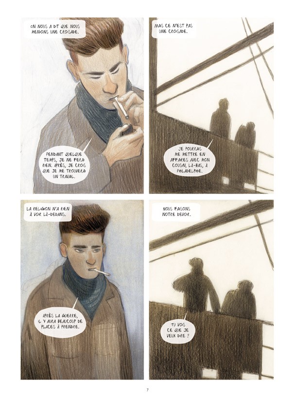 Rhapsodie en bleu ("Rapsodia in blu") d'Andrea Serio, publié en Italie aux éditions Oblomov est librement inspirée du roman de Silvia Cuttin "Ci sarebbe bastato" (Epika Edizioni, 2011)." Ce dessinateur italien a maintenant atteint une telle personnalité et une telle reconnaissance qu'il en fait une catégorie à part, renforçant son identité artistique. Cet album raconte une histoire vraie, la jeunesse d'Andrea Goldstein, tragiquement brisée par l'arrivée des lois raciales qui le conduiront à se réfugier à New York, niant (par colère et déception) son pays natal, coupable d'avoir choisi d'être fasciste. Qu'est-ce qu'une rhapsodie ? Elle ne suit pas un schéma fixe, mais se présente comme un ensemble de repères mélodiques, également très différents les uns des autres en termes de rythme et d'harmonie, ce qui donne à la composition des sonorités presque improvisées. Dans cet ouvrage, l'histoire est une rhapsodie, maintenue par le bleu de ces décors pastels, qui raconte les histoires éparses de trois cousins de Trieste d'origine transylvanienne. Les années sont celles de la guerre, des déportations, du régime fasciste. Les événements racontés sont fragmentés, mais maintenus ensemble par l'empathie que le lecteur crée avec l'histoire. L'esthétique des panneaux est enveloppante et envoûtante, la beauté des dessins contraste avec l'amertume de l'histoire. Dans le livre de Silvia Cuttin, il y a l'histoire d'Andi, celle de son cousin Martino - l'un des rares juifs italiens à avoir survécu aux camps d'extermination nazis -, de Cati et de bien d'autres vies marquées à jamais et presque toujours détruites par le fascisme, le nazisme, par la décision de certains peuples de proclamer leur supériorité inexistante sur les personnes de religion juive. En attendant, il en résulte une bande dessinée émouvante, très bien racontée et dessinée de manière extraordinaire par Andrea Serio.