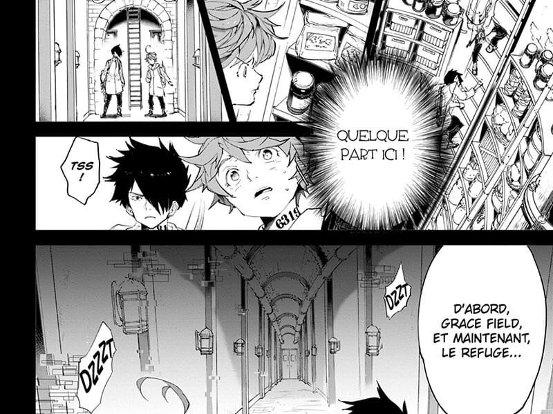 The Promised Neverland (Yakusoku no Neverland) est une série toujours en cours de parution au Japon et qui a connu vingt tomes aux éditions Shueisha. À Grace Field House, la vie ne pourrait pas être meilleure pour les orphelins ! Bien qu'ils n'aient pas de parents, avec les autres enfants et une gentille "Maman" qui s'occupe d'eux, ils forment une grande famille heureuse. Aucun enfant n'est jamais négligé, d'autant plus qu'ils ont tous été adoptés à l'âge de 12 ans. Leur quotidien est soumis à des tests rigoureux, mais ils sont ensuite autorisés à jouer à l'extérieur. Ils doivent obéir à une seule règle : ne pas quitter l'orphelinat. Mais un jour, Emma et Norman, deux des orphelins les mieux notés, s'aventurent derrière la porte et découvrent la réalité horrible qui les anime : ils sont tous du bétail et leur orphelinat est une ferme où est cultivé la nourriture pour une mystérieuse race de démons. Alors qu'il ne leur reste que quelques mois pour mettre en place un plan d'évacuation, les enfants doivent en quelque sorte changer leur destin. The Promised Neverland est une série plutôt unique dans un magazine comme le Weekly Shonen Jump. Bien sûr, il y a de jeunes protagonistes, de nombreuses scènes d'action et des éléments surnaturels qui abondent, mais il y a aussi un élément de thriller intense. Tout autant qu'un conflit a lieu mentalement comme physiquement.