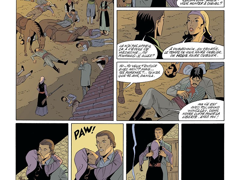 Dans cet album âpre où coexistent à chaque page plus de rebondissements que dans une saison complète de sitcom, tout donne l’impression de vouloir raconter le maximum de choses en un minimum de place. Le lecteur programmé à l’ancienne ne peut s’empêcher d’entrevoir un parallèle avec l’excellente série "Les Maîtres de L'Orge" dessinée par Francis Vallès, à la différence que Jean VanHamme fait avancer Vanko plus vite qu’un cycliste sous EPO. Trois tomes prévus pour une période couvrant presque 150 ans, ce n’est visiblement pas assez pour lui. Les ellipses sont donc légions : il faut parfois s’accrocher pour suivre une trame qui se démultiplie à chaque page. Ce récit dur, vraisemblable dès lors que le lecteur en accepte les raccourcis saisissants, ouvre quantité de portes en même temps sans (pour l’instant) en choisir une particulière. Le scénariste décrit l’immigration telle qu’elle est, violente, cruelle, comme un perpétuel combat pour la survie, telle que les Américains la conçoivent : travailler beaucoup et dur pour réussir. Vanko représente ainsi — durant une grande partie de l’album — le légalisme quasi dogmatique de la plupart des immigrants : l’intégration à la nouvelle mère patrie prime sur toute autre considération. Hormis l’injustice, point d’orgue de l’épisode. Les personnages féminins, de loin les plus intéressants, comme souvent chez Van Hamme, sont féministes avant l’heure, indépendantes, fortes, beaucoup plus évoluées, libres-penseuses que les hommes placés sur leur chemin. Le choix de Philippe Berthet pour s’approprier cette nouvelle saga fondatrice en constitue le point faible. Son trait, un peu figé pour un tel récit, manque cruellement d’épique, d’envolée, d’inspiration. Surtout avec des couleurs qui amplifient la froideur du dessin. En noir et blanc avec des aplats (technique qu’il maîtrise parfaitement), le dessin aurait probablement gagné en intensité et en expressivité. Un bon départ néanmoins.