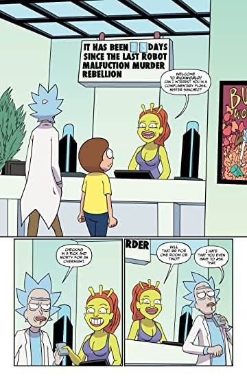 Adaptation de la série d'animation "Rick and Morty", le comics book en est la suite directe et nous permet de suivre ce duo dans des aventures plus WTF les unes que les autres!! Rick et Morty, c'est une parodie de Marty et Doc de Retour vers le futur. Sauf que Rick ne voyage pas dans le temps mais dans le multivers nous offrant ainsi une infinie possibilités de gags toujours plus borderlines. De plus, Rick est un vieillard alcoolique et antipathique qui lors de leurs aventures infligent les pires sévices à son petit fils Morty. Quant à lui Morty, c'est un adolescent peureux, quelque peu idiot en plein dans l'âge ingrat, tourmenté par sa puberté. Le comics comme la série est complètement décalée et hilarante. Avec un véritable fond, tantôt on parle de la famille, des problèmes de couples, de l'adolescence et des questions/problèmes qui s'y rapportent. Mais c'est aussi sur le fond une critique satyrique de la société dans laquelle on vie, du consumérisme et du capitalisme. Mais Rick et Morty c'est aussi un immense hommage à la POP-CULTURE avec des références en veux-tu en voilà !!! Sur la lignée des séries comme American Dad, Les Griffins, South Park, une vraie bouffée d'oxygène !!!