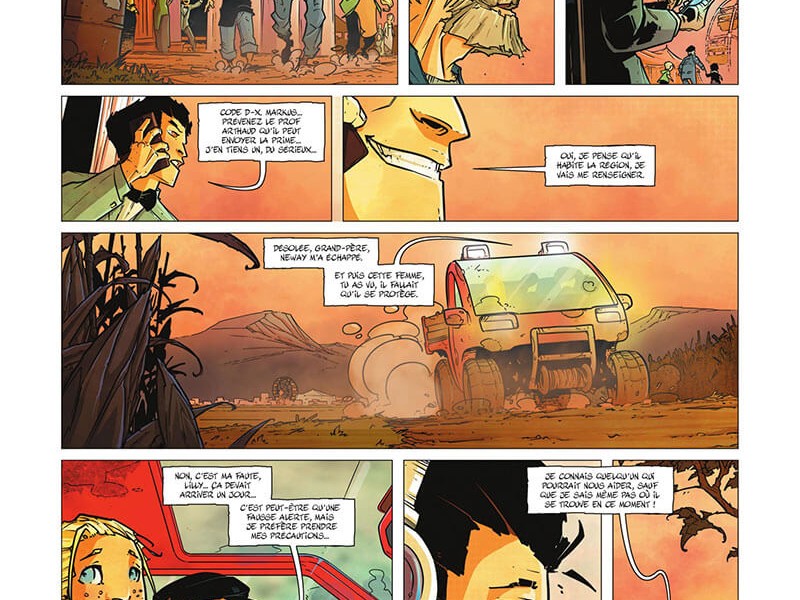 Serge Le Tendre imagine cette intrigue d'anticipation dans un avenir proche où les grandes holdings, après avoir minimisé le réchauffement climatique, ont bien voulu s'y attaquer en y voyant une nouvelle source de revenus. Droïdes, drones et pouvoirs psychiques sont le lot surnaturel de cette intrigue futuriste. Côté dessins, c'est Patrick Boutin Gagné au trait et Aurélie Frémineur à la couleur qui s'y collent pour un graphisme qui fait penser à de l'animation avec des personnages légèrement stylisés et une dynamique cinématographique des cases.