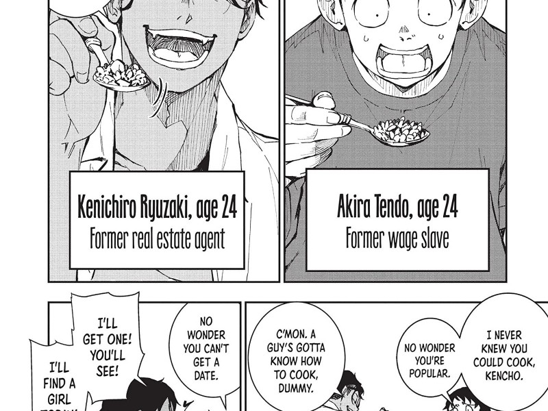Il est agréable de voir une bouffée d'air frais souffler sur un sous-genre fatigué. Lorsqu'il s'agit d'histoires de zombies, ce sont des récits comme Shaun of the Dead, 28 Jours plus tard et même Orgueil et préjugés et zombies qui brillent le plus parce qu'ils s'éloignent de la formule habituelle. Zom 100 : Bucket List of the Dead, le dernier manga du scénariste d'Alice in Borderland, Haro Aso, et du dessinateur de I Am Sherlock, Kotaro Takata, pourrait très bien être placé parmi ces autres grands récits de morts-vivants, comme en témoigne son deuxième volume. Divisé en deux histoires, le deuxième volume de Zom 100 voit l'ancien salarié Akira Tendo et son copain de collège Kenichiro Ryuzaki ajouter et rayer des choses de leur liste de choses à faire. En quête d'une meilleure télévision, ils se heurtent à des hôtesses de l'air coincées, ce qui donne lieu à un dîner et un vin improvisés. Au cours de ce scénario, Akira se souvient de son rêve d'enfant : devenir un super-héros ! Son acte "noble" finit par provoquer un rendez-vous avec une fille mystérieuse de l'époque, qui lui dit quelques vérités sur ce que devrait être un vrai héros. Il y a un bon équilibre entre humour et drame dans ce volume de Zom 100, en particulier dans l'histoire "Flight Attendant of the Dead". Ce qui commence comme une folle spirale vers le pire dîner imaginable se transforme en un conte sur la recherche de son but et de ses rêves dans la vie. A un moment, vous vous moquez d'Akira après qu'il ait tenté d'avaler une bouteille entière de Jim Bean ; l'instant d'après, vous vous sentez mal pour lui après avoir vu ce que deviennent ses nouveaux amis. Ce sont des moments comme celui-ci qui permettent de construire une histoire profonde et un monde. Ceci étant dit, c'est le dessin de Takata qui est le phare de ce volume. Regarder Akira et Kenichiro traverser Ikebukuro montre à quel point l'ancien employé de bureau est déjà devenu un dur à cuire. Mais c'est dans "Hero of the Dead" que Takata embrasse l'absurdité des films d'horreur de pacotille. La vue d'un requin zombie qui sort de l'eau grâce à des plongeurs zombies qui le promènent par l'estomac est d'un niveau de folie qui rendrait jaloux au-delà de toute croyance un scénariste de ces films SyFy terriblement mauvais !