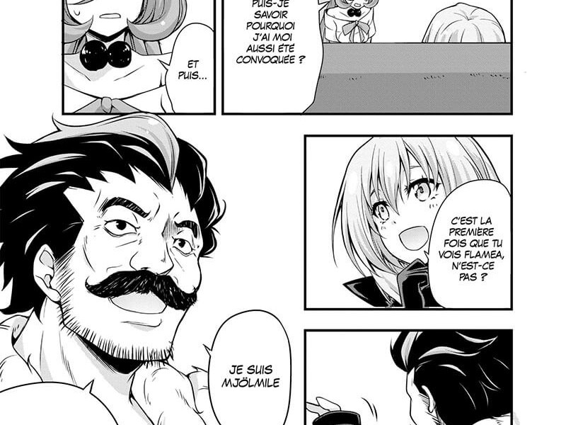 Le troisième volume va vous donner faim ! Limule appelle Flamea pour lui parler car il a un invité spécial en la personne de son ministre des finances, Mjollmill. La première partie du guide de Flamea est prête à être imprimée mais Mjollmill suggère un événement au Colisée pour aider à le distribuer. Dès qu'il en est question, le seigneur démon Milim arrive, cherchant à se battre... et ce sera le cas. Sous la forme d'un concours de cuisine avec un accent sur les desserts ! Un panel de quatre juges est réuni pour juger les sucreries créées par des chefs de renom venus des quatre coins du pays ! Préparez-vous à des images époustouflantes, plus belles que de la vraie nourriture, et à des descriptions dignes de Food Network. Pour être honnête, si vous avez lu un seul manga de cuisine dans votre vie, vous ne trouverez pas grand-chose ici qui soit si différent. Un demi-volume de manga plus tard, Flamea rencontre un orc qui, malgré sa taille et sa force, est en fait assez faible, mais il est déterminé à aider son peuple... alors il veut devenir chef. Sans vouloir dévoiler le nom du vainqueur du tournoi, nous dirions simplement que Flamea l'emmène voir le vainqueur mais qu'il lui suggère quelqu'un d'autre parce qu'il est spécialisé dans les sucreries et que s'il veut vraiment mettre fin à la famine qui sévit chez les orcs, il serait mieux placé pour apprendre d'un chef polyvalent... Ils se tournent donc vers Shuma. Elle leur fait faire une visite guidée de sa cuisine et, soudain, il semble y avoir une voie pour lui. Après avoir fabriqué des boulettes de riz de mauvaise qualité, l'orc veut s'améliorer. Il s'inscrit dans une école afin d'apprendre à cuisiner. Limule suggère que Flamea s'inscrive également. En moins de temps qu'il n'en faut pour le dire, on nous fait faire le grand tour du campus. En chemin, nous finissons par visiter le département artistique où une statue de Limule a été sculptée mais a disparu ! Ramiris, le maître détective, est sur l'affaire et nous allons la résoudre..... dans le prochain volume !