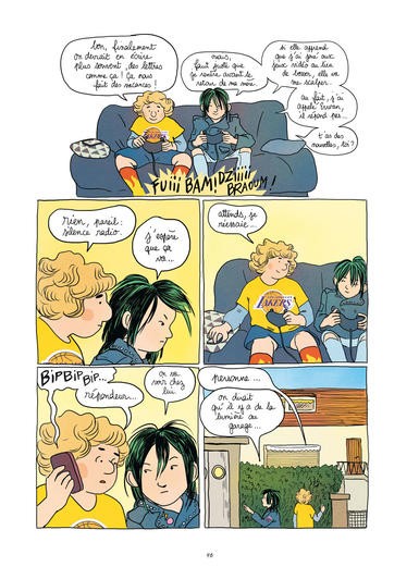 Voilà un étrange roman adapté en bande dessinée par Cati Baur. En dépit de sa brièveté, il était parfois difficile de sentir à l'aise avec ses personnages, sans doute à cause de leur fameuse "inadaptation". En quoi consiste-t-elle ? Difficile à dire - le fait qu'ils s'habillent avec soin et que, du coup, ils sont persécutés par les autres élèves ? Nous n'en avons pas tellement vu les preuves, si ce n'est qu'Erwan a été agressé à son retour du collège, sans que l'on sache très bien par qui ni pourquoi. Martin, le narrateur, se définit comme ironique - rarement personnage se sera jugé avec autant d'acuité. Cependant, tant d'ironie chez un personnage aussi jeune, tant de pessimisme aussi ne me paraît pas normal. Il serait question d'aborder l'avenir avec optimisme grâce à cet ouvrage. Où est la confiance en l'avenir, quand le narrateur dit : "j'avais l'impression que depuis l'enfance on nous mithridatisait contre la tristesse et le renoncement. Notre corps et notre esprit allaient s'habituer à ces poisons, à tel point qu'un jour nous ne réagirions plus quand les choses terribles arriveraient. Nous ne réagirions plus à nos vies. la tristesse et l'ennui ne seraient plus ni tristes ni ennuyeux, ils seraient notre normalité, notre quotidien." Bien entendu, le point de vue donné sur les professeurs - alcooliques et passionnants ou sobres et ennuyeux, il faut choisir - peut surprendre car rien n'est aussi simple dans l'éducation nationale. Le père est bien sûr absent. Pardon ! Ce grand médecin, qui consulte en pyjama, chatte tous les soirs sur internet avec son amie virtuelle, et est soucieux de donner une bonne éducation à son fils. Rendons-lui justice : en cas de soucis, il est efficace.