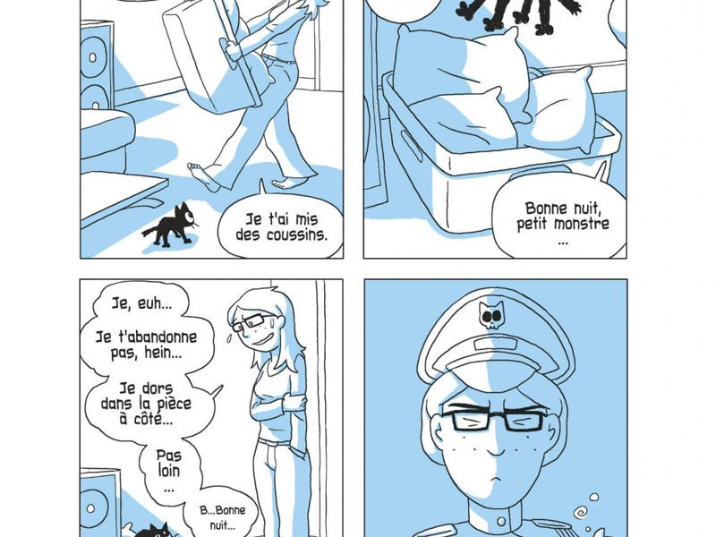 La progression est très limpide, essentiellement un gag par planche, et le design volontairement épuré en bichromie se montre très poétique. Les crayonnés ne manquent pas d'expressivité et certaines planches extérieures affichent des décors magnifiques. L'univers est suffisamment rassembleur pour séduire un large public, qu'il soit propriétaire de chats ou non, et cet ouvrage de 128 pages régalera les amateurs d'humour.