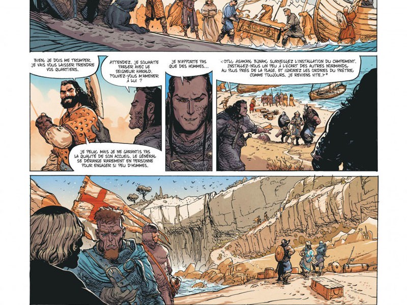 Le duo Vincent Brugeas/Ronan Toulhoat (Le Roy des Ribauds, Block 109, etc) se reconstitue à l'occasion d'une nouvelle série historique. Dès les premières pages, beaucoup de questions nous interpellent sur le réel but que poursuit Tancrède dans cette mission menée par l'Église. La mise en place des événements s'avère très efficace et le récit débute en force avec un groupe de mercenaires qui fait rapidement parler les muscles. Le passé de Tancrède reste encore des plus mystérieux dans ce premier tome, le scénariste Vincent Brugeas dévoilant avec parcimonie les informations nécessaires pour comprendre les agissements du personnage. Les dessins de Ronan Toulhoat sont parfaitement à l'unisson, offrant des personnages riches en nuances, des décors prodigieux et une mise en scène très harmonieuse. Du côté des couleurs, la tonalité évolue selon la période visitée : façon sépia dans le passé, vives à l'époque présente, et sanglantes dans les scènes d'action.