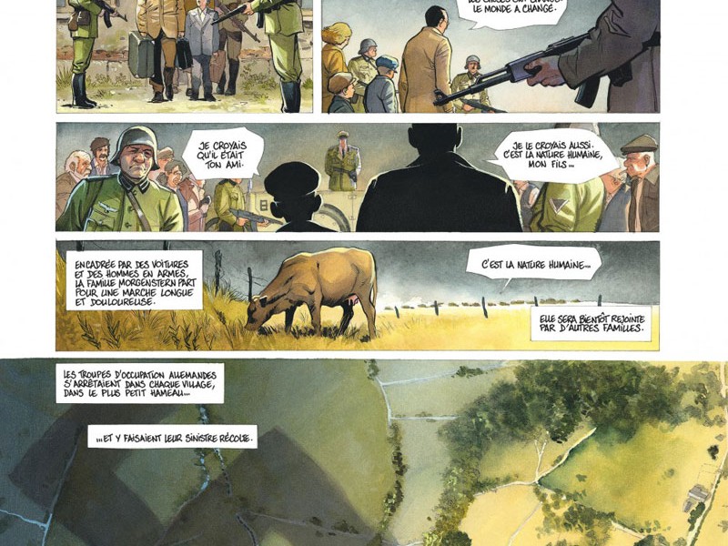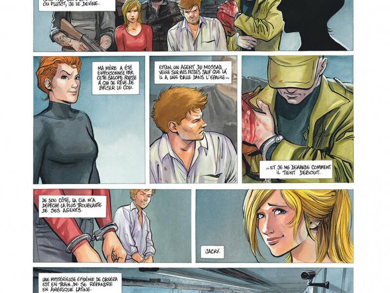Le Project Bleiberg est l'adaptation du roman de David Khara qui fut un succès en librairie. Le scénario comporte de nombreux flashbacks historiques, nous replongeant dans l'Allemagne nazi des années 1940, ainsi qu'en Pologne en 1942 au camp de Stutthof, lorsque le chef suprême de la SS, Heinrich Himmler rencontre secrètement Victor Bleiberg, un scientifique qui partage les idées de Mengele. Au temps présent, l'intrigue permet d'en apprendre davantage sur la famille de Jeremy Novacek et sur Eytan qui semble avoir un lien très personnel avec les victimes du ghetto de Varsovie. Le récit alterne entre le thriller et le récit fantastique. Niveau décor, nous avons le bonheur d'être transporté d'une époque à une autre, de la Belgique moderne en passant par l'Allemagne d'autrefois. On avance donc sans trop savoir où cette histoire nous mènera, mais sans jamais s'ennuyer. Le dessin de Peynet est à l'unisson, avec un trait fin et élégant. Que cela soit les durs paysages du passé (ghetto, camp de concentration) ou les bâtiments urbains modernes, la mise en page s'avère très précise. A noter que si le Projet Bleiberg trouve sa conclusion avec ce tome, deux suites ont vu le jour, le Projet Shiro et le Projet Morgenstern.