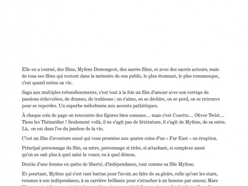 Paris 1985. Avant qu'elle ne soit emportée par la maladie, la mère de Mylène Demongeot décide de lui raconter son enfance à Kharkov (Ukraine), son adolescence lors de la révolution bolchévique, puis son premier mariage raté à l'âge de 15 ans. Avec sa sœur et son jeune fils, Klavdia Troubnikova entreprend un voyage à Shanghai, l'Hollywood des années 20, où de nombreuses réfugiées russes ont pu survivre, si elles sont très belles. Le tome est divisé en trois chapitres, "Enfance", "Amours" et "Accomplissement". Particularité des dessins, deux auteurs se succèdent tout au long de l'intrigue. Catel illustre la vie de Mylène Demongeot, tandis que Claire Bouilhac dessine celle de sa mère. Cela permet de bien suivre les sauts dans le temps et donc de découvrir les impacts de la vie Klavdia sur celle de Mylène.