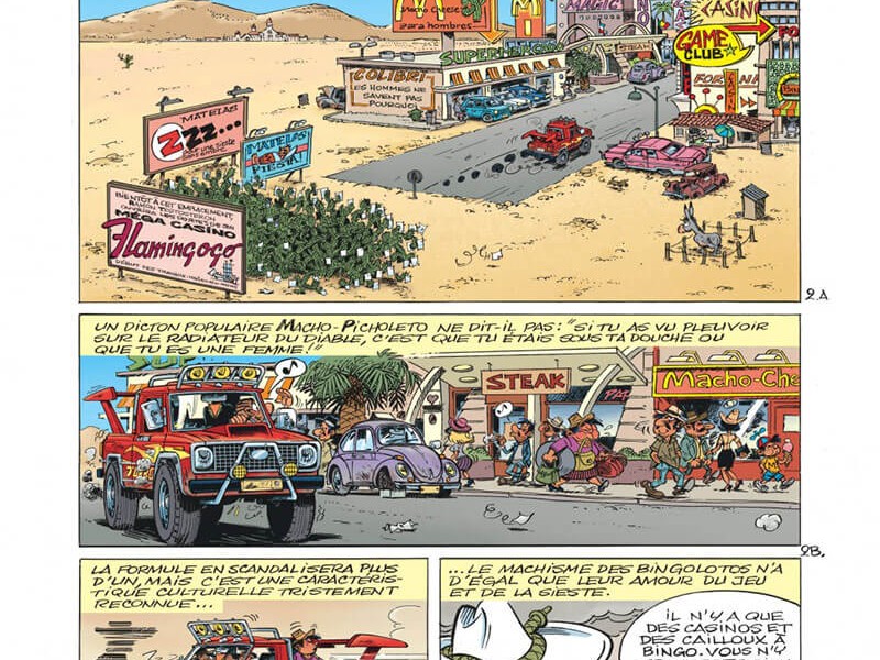 Ce nouvel épisode de Marsupilami évolue à nouveau sur deux axes. D'un côté, nous suivons la quête d'une femme se révoltant contre le machisme régnant dans le Las Vegas palombien, de l'autre la mère Marsupilami recherche son bébé qui a mystérieusement disparu. Un hymne à la femme plutôt réussi.