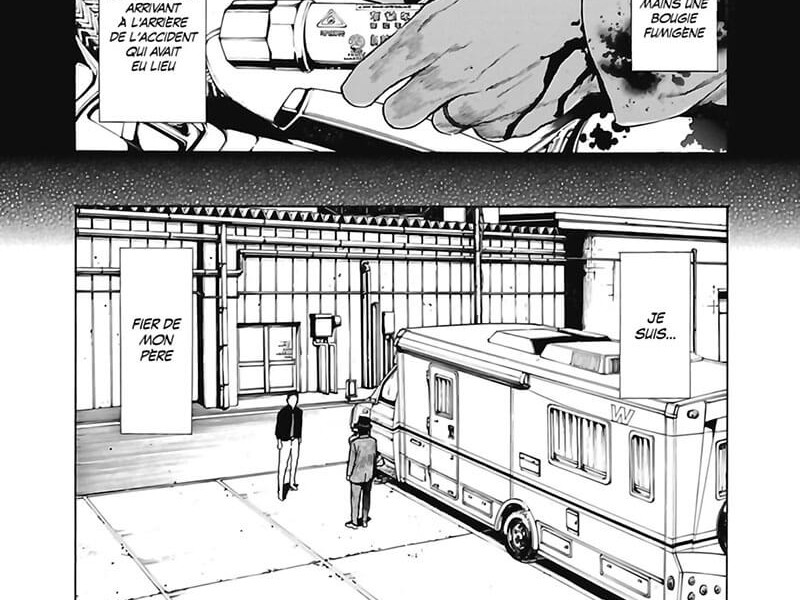 Dans ce cinquième volume, la tension monte encore d'un cran. Tetsuo ou Kyôichi ne survivra pas aux prochains chapitres. Comme le rappelle l'ultimatum de la mafia, Testuo sera torturé et abattu si aucun coupable n'est désigné d'ici demain soir. Si on pouvait penser que le Yakuza aurait un avantage, Tetsuo a semble-t-il garder une carte utile dans son jeu. Les ossements de Nobuto sont en effet retrouvés dans le coffre-fort de Kyôichi ! Eh oui, il a joué et a perdu, sans avoir tenu compte du rôle de Kasen, la femme de Tetsuo, dans cette partie. Kyôichi s'est montré très humain dans les tomes précédents et Tetsuo semble triste à ce qui va lui arriver, mais ce dernier sait qu'il n'a pas le choix s'il veut sauver sa peau. Kyôichi est quant à lui certain que Tetsuo est l'auteur de toutes ces manigances et tente le tout pour le tout pour rester dans le match. Comme le ferait un auteur de polar ou un expert de la police, Tetsuo ne se laisse pas abattre et analyse méticuleusement la situation afin de trouver le meilleur moyen de retomber sur ses pattes, même si les moyens de la mafia japonaise sont considérablement supérieurs. L'auteur insère d'ailleurs quelques pages pour expliquer son cheminement de pensée, ce qui est toujours utile. Un autre point appréciable dans cette histoire est l'ingéniosité qui s'apparente à Death Note. Les sentiments et la psychologie des personnages ont également leur part belle à chaque étape de cette aventure. Le travail graphique est superbe. Il est très clair que le physique de Tetsuo correspond vraiment au ton de l'histoire alors que les personnages féminins apparaissent extrêmement charmants.
