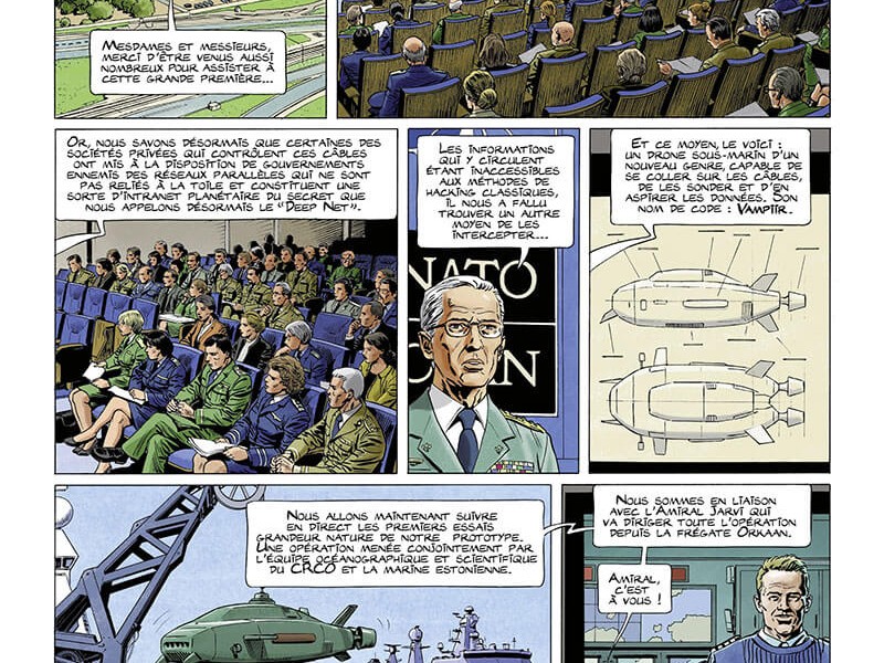 Lady S. est le surnom de Shania Rivkas, d'origine estonienne, mais elle est employée par la CIA depuis longtemps. C'est un peu une coïncidence qu'elle soit prise dans cette aventure. Elle reçoit un message de sa tante malade qui a une annonce importante à faire. Elle voyage en privé en Estonie et veut lui rendre visite dans un hôpital. Elle est accidentellement entrée dans la mauvaise chambre. Là, elle tombe sur un homme mortellement atteint qui lui fait une annonce énigmatique. Il s'avère être le seul survivant d'un sous-marin coulé qui a volé un drone ultra-secret de l'OTAN. Les services secrets russes recherchent également le drone. Ils découvrent que Shania était avec le survivant et l'enlèvent pour savoir s'il lui a dit quelque chose. Conrad, son amant et collègue à la CIA est parti à sa recherche, mais ne peut pas empêcher l'enlèvement en un rien de temps. En rassemblant toutes les informations, les Russes ont maintenant découvert où le drone se trouve au fond de la mer. Un sous-marin russe ramasse le drone et emmène Shania et ses ravisseurs avec lui. Bref, ça se présente mal pour Lady S. Ce tome de Lady S est une nouvelle fois signé entièrement par Philippe Aymond. Le dessinateur s'en sort avec les honneurs, avec des crayonnés toujours aussi détaillés, et des décors riches en nuances. Le scénario est également intéressant avec une intrigue mêlant espionnage et dérives diplomatiques, ce qui colle assez bien à l'actualité du moment.