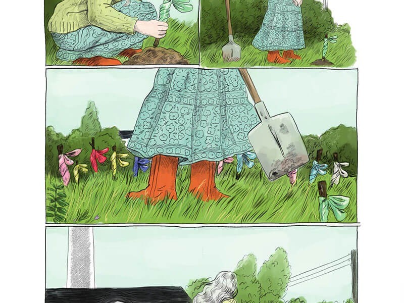 Cette BD raconte l'histoire de Béranger, un scénariste de 44 ans. Il plaque l'univers parisien pour s'installer à la campagne ... face à des éoliennes. Mais ce n'est pas le bruit des éoliennes qui va le rendre fou, mais c'est ce qu'il entend sur elles. Il fera la connaissance de son exubérante voisine, Marjolaine, conductrice de bibliobus, coeur solitaire et fossoyeuse pour oiseaux tués par les fameuses éoliennes. Le scénario est original et bien ficelé. Il parle de différentes thématiques comme la crise de la quarantaine, la ville face à la campagne, la discrimination physique, les clichés de tous genres, l'environnement, l'écologie, le féminisme, la société actuelle. C'est un véritable retour aux sources qui se peut se lire d'une traite. La bande dessinée est partagée en chapitre saisonnier. Mois par mois, on suit les aventures de Béranger. Les dessins d'une page ou double page sont majestueux. Le trait est travaillé et les couleurs sont vives. Une BD poignante à la Posy Simmonds, surtout le personnage haut en couleurs de Marjolaine, mais aussi de la fille aux cheveux arc-en-ciel de Béranger... la fin coup de poing donne envie d'en savoir plus, mais c'est une histoire complète à nous de nous interroger sur le devenir des personnages.