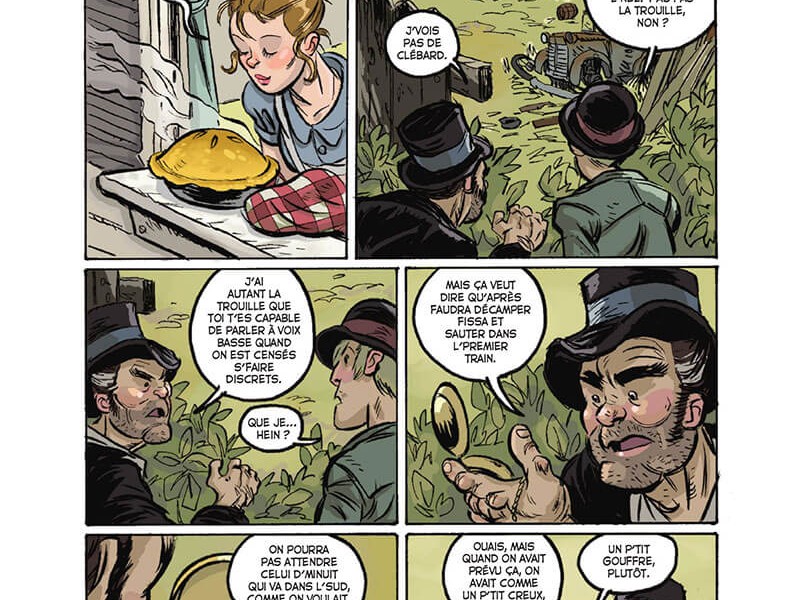 Deux clochards en fuite après avoir été faussement accusés de meurtre. C'est un roman graphique humoristique. Les drôles de répliques musicales s'avèrent particulièrement efficace. L'histoire commence de façon si innocente avec des vagabonds qui volent une tarte à la fenêtre, mais cela devient rapidement plus sombre. A partir de là, c'est toute une aventure. Tous les tropes classiques des histoires de l'époque de la dépression sont présents. Il y a même une représentation homosexuelle, ce qui n'est pas si fréquent dans ce genre de récit. Un narrateur invisible nous guide avec des côtés spirituels, des suggestions de musique à thème et une prédiction inquiétante occasionnelle. Parfois, cela ait penser à certains des vieux dessins animés de Disney (Robin des Bois ou peut-être Le Livre de la Jungle). C'est amusant, irrévérencieux et idiot avec  des moments sérieux occasionnels. Les personnages de Jed et Thanny ne seraient pas hors de propos dans les contes de Cannery Row de John Steinbeck ou de Huck Finn de Mark Twain.