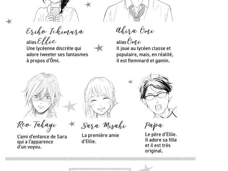 @Ellie (Koi Wazurai no Ellie) est une série récemment conclue au Japon en onze tomes aux éditions Kodansha. Eriko Ichimura passe ses journées de lycée dans l'obscurité la plus totale. Son seul passe-temps est de fixer le beau Akira "Omi-kun" Ohmi, à la voix douce, et de tweeter ses fantasmes quotidiens sous le pseudonyme "Lovesick Ellie". Un jour fatidique, elle témoigne accidentellement de la véritable personnalité d'Omi-kun et comme si cela ne suffisait pas, il la voit aussi sur Twitter, un Twitter mortifiant ! Suivez une fille simple et perverse, un garçon à deux visages, et leur curieuse romance !