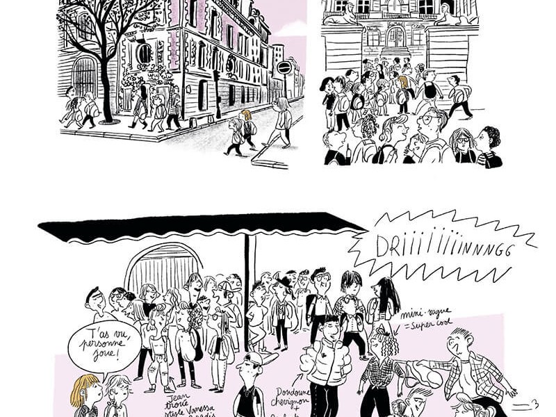 Résumé : Magali a 11 ans. Elle aime les Beatles, dans la catégorie « passionnément » ou « à la folie ». Ce qu'elle aime moins, c'est l'école, surtout depuis qu'elle est au collège. Elle qui pensait être une élève comme les autres éprouve soudainement une peur panique à l'idée d'aller au collège. Telle une "Alice au pays des merveilles", elle se réfugie alors dans l'univers parallèle des Beatles nourri de leur musique et de couleurs éclatantes. Une bande dessinée autobiographique, sensible et drôle, en dépit de la gravité du sujet, la phobie scolaire.