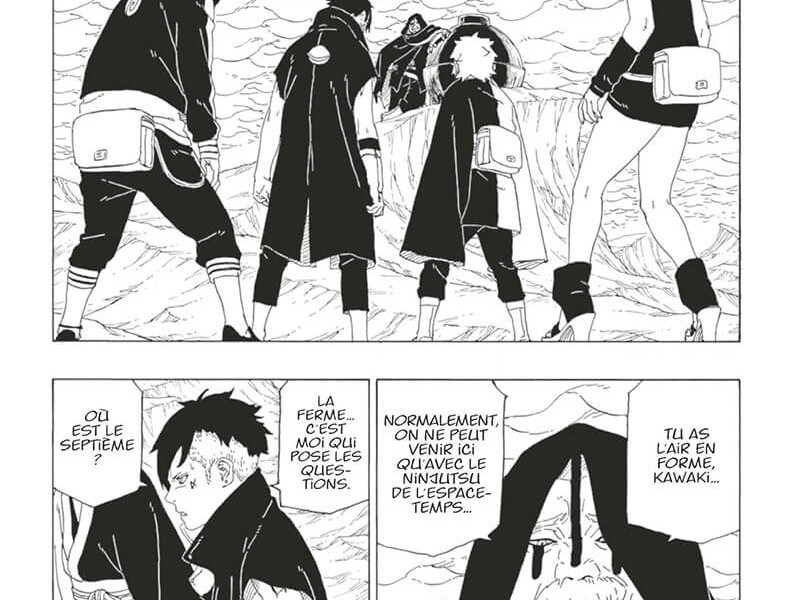 Il n'y a pas eu beaucoup de développement de personnages (en dehors de la seule chose dont nous ne parlerons pas à cause des spoilers). Sarada a un peu évolué, au moins pour cette mission, elle a été nommée capitaine de l'équipe 7, mais c'est Kawaki qui a pris les rênes à la fin... Même s'il l'a fait, Sarada avait un plan qui les a menés à la victoire et elle a pu utiliser un tout nouveau ninjutsu qu'elle avait appris depuis un certain temps. Lorsqu'elle l'a utilisé, Boruto l'a immédiatement reconnu et a été surpris que Sarada ait été capable de le maîtriser ! En dehors de cela, Boro était plutôt intéressant en soi. Il savait que Mitsuki était le fils d'Orochimaru, il savait que Boruto était le vaisseau de Momoshiki Otsutsuki, il savait pour la lignée Uchiha et le Sharingan. Il avait beaucoup d'informations et de connaissances et il reste à savoir si c'est quelque chose qu'il savait intrinsèquement ou quelque chose qui a été recherché et partagé dans son ensemble par Kara. Quoi qu'il en soit, il est évident que Kara a fait ses devoirs, ce qui, indirectement, fait d'eux un groupe encore plus dangereux... un groupe qui a des problèmes intérieurs en ce moment. Ce qui nous amène à Koji. Ses motivations sont encore un peu floues mais vouloir couper la tête de Kara est un geste un peu étrange. Il sera intéressant de voir comment tout cela va se dérouler ; cependant, nous nous attendons à ce que sa rébellion soit son drapeau mortuaire dans le prochain volume. Dommage, car il est l'un des personnages les plus intéressants de cette série.