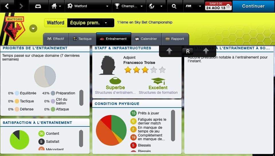 ![]() Plate-forme : PlayStation Vita Date de sortie : 11 Avril 2014 Editeur : Développeur : Genre : Sport Multijoueur : Non Jouable via Internet : Non Test par Nic0077/10 Football Manager accueille une version repensée sur PlayStation Vita. Des nouveautés ?Après plusieurs éditions sur PSP, Sports Interactive adapte enfin Football Manager sur PS Vita. Il faut avouer que le jeu ne montrait pas son meilleur visage d'emblée avec une jouabilité utilisant l'écran tactile de la console absolument atroce (rien ne fonctionnait vraiment). Avant de lancer quelconque partie, il est recommandé de télécharger la mise à jour 1.01 sans quoi l'expérience de jeu sera fortement compromise (la jouabilité a été fixée depuis). Comme son nom l'indique, cette version nomade se calque sur l'interface du mode Classic de la version PC. On peut envoyer ses sauvegardes dans le cloud pour les poursuivre ailleurs, mais les problèmes de lisibilité sont criants une fois dans le menu principal. Les textes sont vraiment très petits sur l'écran de la Vita (presbytes s'abstenir) et les temps de chargement s'avèrent horriblement lents. La navigation tactile est correcte dans l'ensemble, mais il est difficile d'y retrouver un Football Manager de poche tant la différence de puissance entre une Vita et un PC se fait sentir. Difficile de ressortir une telle base de donnés sans problème, et il faut souvent attendre quelques secondes pour que les menus déroulants s'affichent. Oh certes quelques raccourcis boutons sont proposés : R permet d'afficher la barre de navigation, la croix à poursuivre une action, tandis que les sticks peuvent faire des défiler les listes plus rapidement. Le système de conseil vous aide à divers moments du jeu tandis que le système de notes se montre assez exhaustif, et la gestion de toutes les offres de transfert et de prêt pour votre club, pour les joueurs entrants ou sortants reste assez aisé. Il est facile de comparer les offres avant de les accepter ou de les rejeter. Les médias et les commentaires sont toujours aussi présents, avec de nouveaux acteurs et davantage de détails, ainsi qu’une section sur l’actualité de toutes les ligues. Le système de récompenses dans le jeu est un peu plus précis mais est aussi plus réaliste que dans Football Manager Handheld 2012, et tient davantage compte de vos progrès. Une conversion difficile ?La technologie FaceGen est bien sur toujours de la partie, ce qui confère davantage de personnalité aux participants. Vous voyez le visage des joueurs vieillir pendant votre partie, au fil des saisons. Certes, les menus restent assez austères, du texte et rien que du texte, mais dans son genre, Football Manager demeure une référence, surtout que le moteur 3D du jeu s'avère assez véloce pour convaincre, et les actions paraissent un peu plus cohérentes que par le passé, sans compter que les entraîneurs adverses remanient beaucoup plus fréquemment leur équipe La caméra est un peu mieux gérée et sur le terrain, l'interface permet de modifier plus aisément sa tactique. L'aspect sonore demeure un peu plus en retrait, mais les musiques auraient pu perturber lors des phases de management pur. Certes, Football Manager Classic 2014 ne comporte pas toutes les options de l'édition PC, et l'ergonomie est beaucoup plus délicate qu'au couple clavier/souris. Reste que ceux qui désirent avoir une version portable du jeu accessible un peu partout n'auront pas d'autres choix que de se procurer cette édition, autrement plus complète que les déclinaisons mobiles. VERDICT-Football Manager Classic 2014 est un jeu très addictif, mais non sans défauts. La navigation est extrêmement délicate sur Vita, les chargements s'avèrent beaucoup trop lents, et le manque de lisibilité des textes demandent souvent d'être le nez collé à la console. Une version exhaustive et qui comporte le sel du jeu PC, mais en beaucoup moins bien tout de même ... |